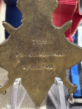 Correctly named 7138 Pte E Vaughan 4/RW Fus on 1914 Star.