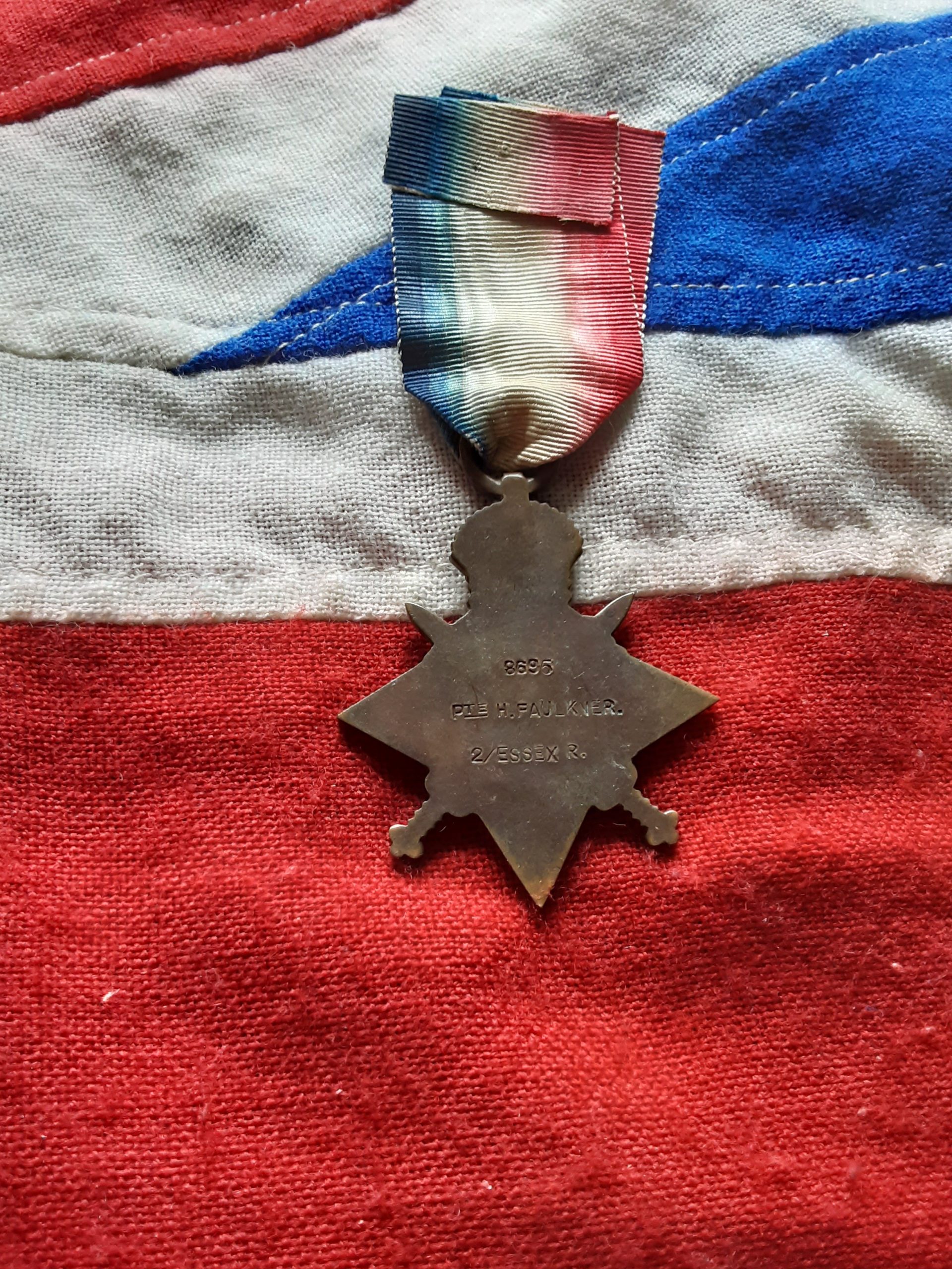 1914 star on original ribbon named to 8695 pte h faulkner 2/Essex r.