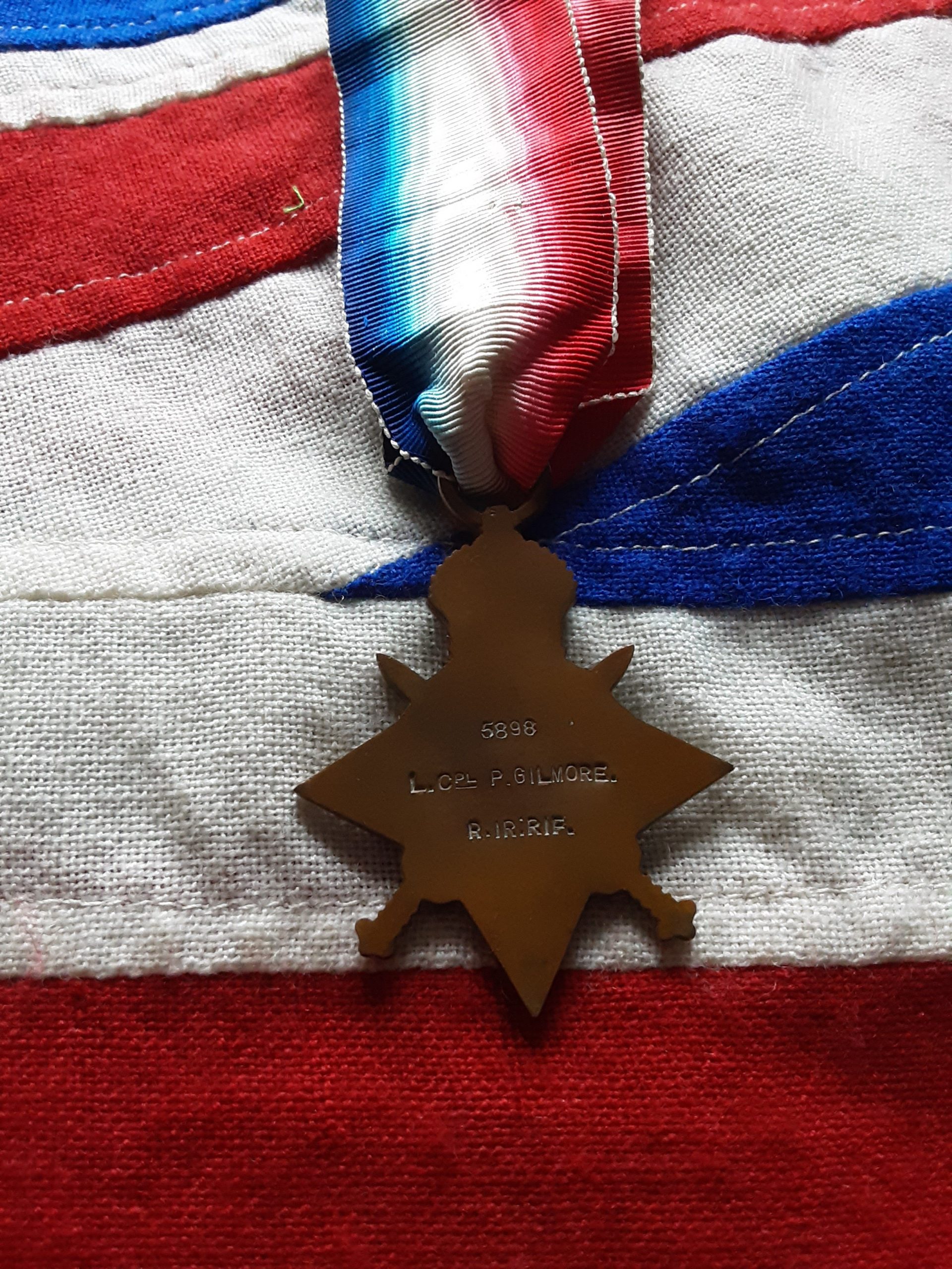 A 1914 star on long original ribbon named to 5898 l cpl p gilmore r ir rif .