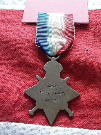 1915 star on original ribbon named to 24997 pte j Stanway ches r .