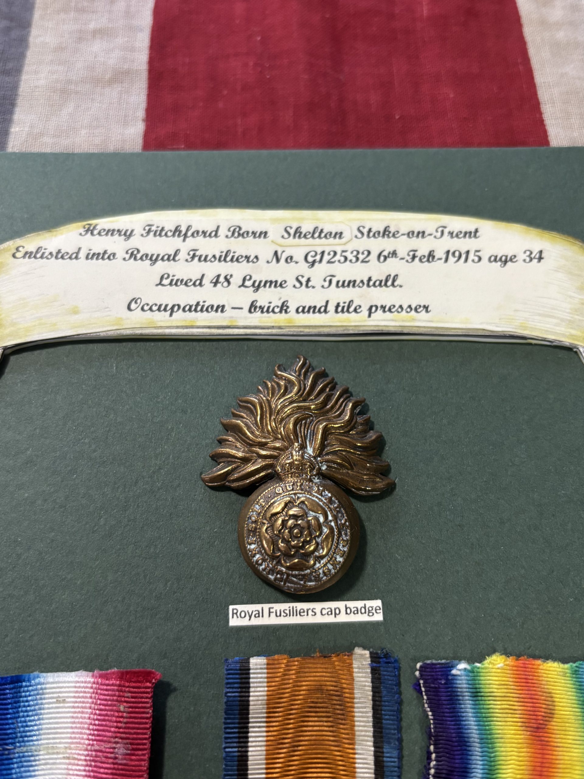 A brick and tile presser by trade, he enlisted into the 9th Bn Royal Fusiliers and went overseas with them in July 1915.