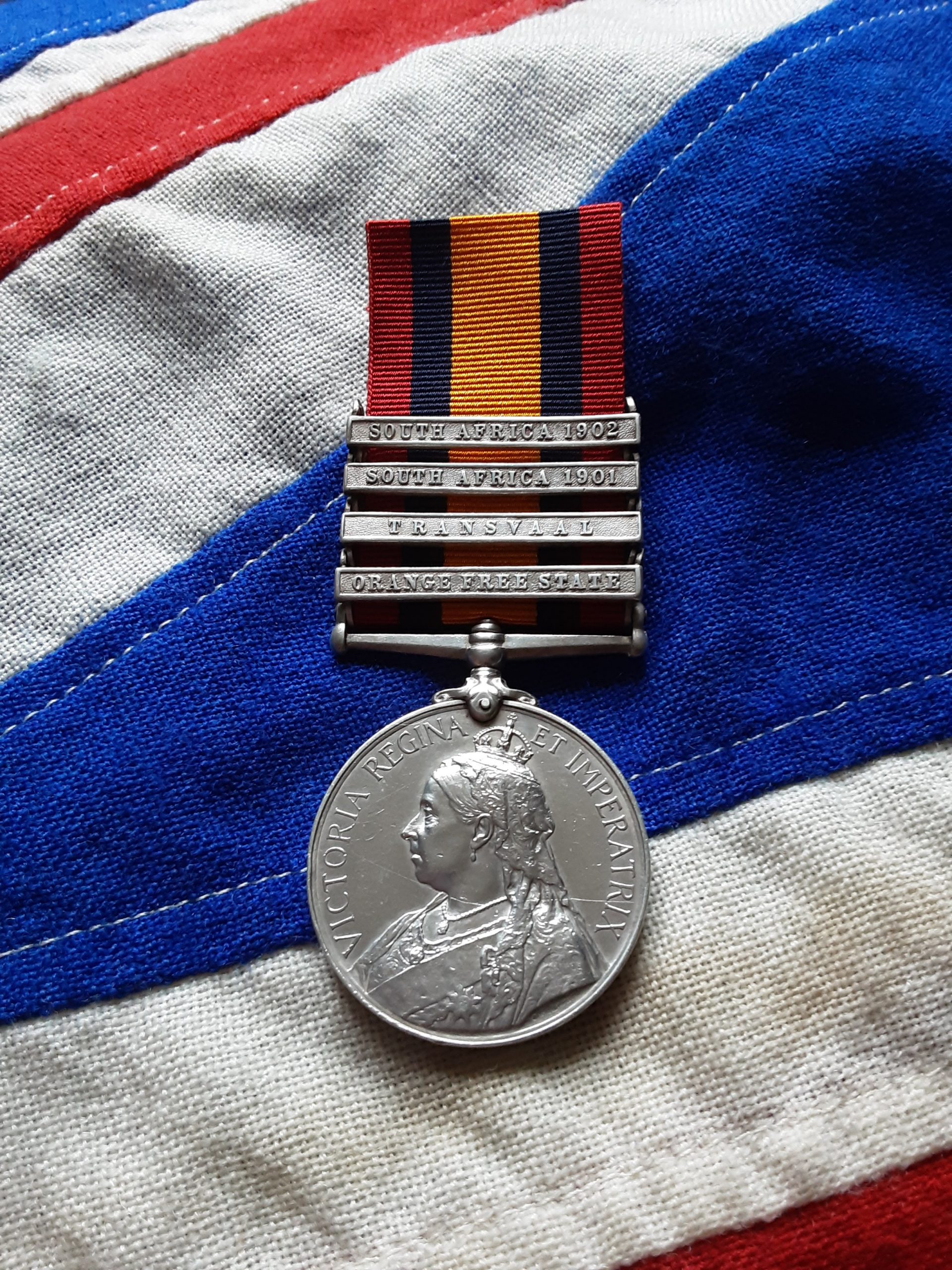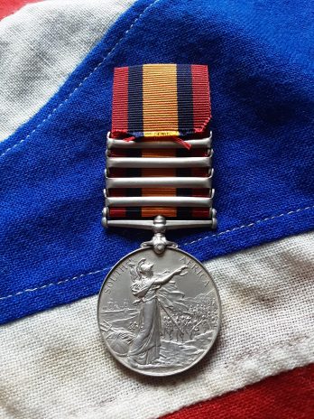 A queens south Africa medal with orange free state, Transvaal, south Africa 1901 & south Africa 1902 clasps on replacement ribbon named to.