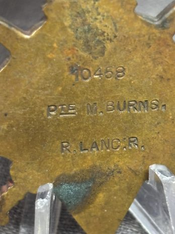 Correctly named 10458 Pte M Burns R Lanc R