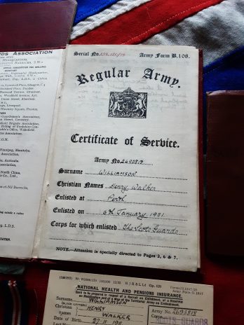 Regular army certificate of service for 2693818 Henry walker Williams scots guards who enlisted 6th January 1931 and was discharged 5th January 1935 after 5 years home service .