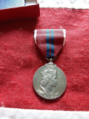 A boxed 1953 coronation medal brooch mounted for wear .