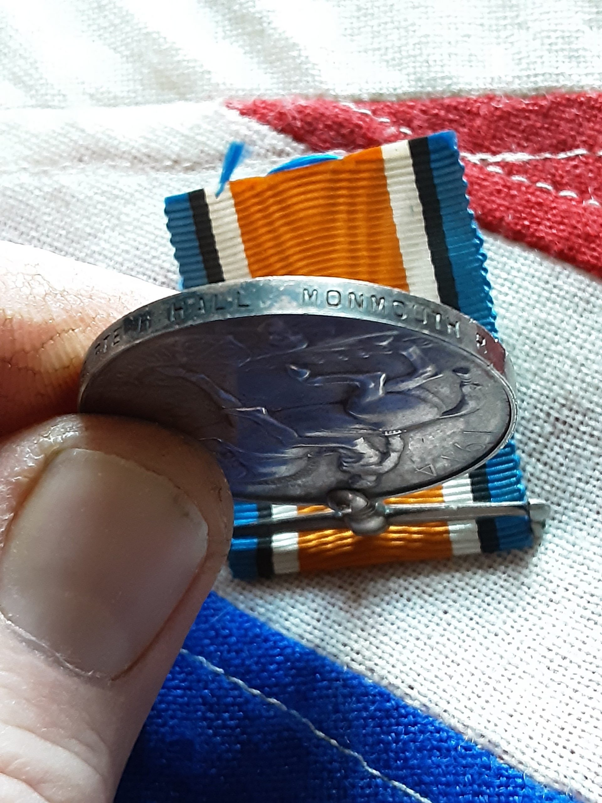 Ww1 British War Medal on short original ribbon named to 315372 pte h Hall Monmouth r.