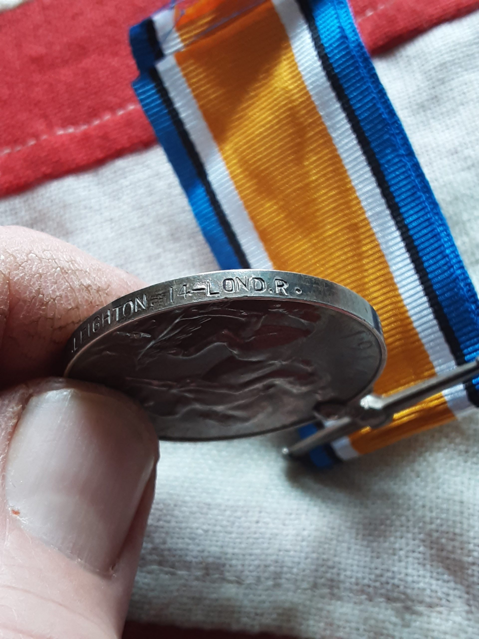 Ww1 British War Medal on replacement ribbon named 2615 pte b Leighton 14 lond r .