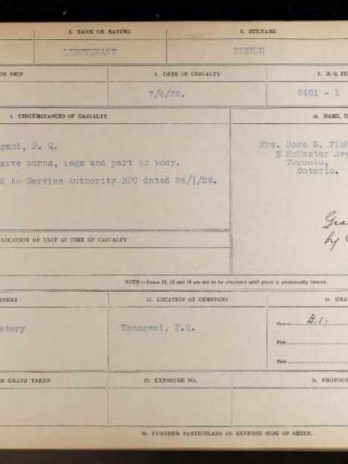 Next of kin Widow Dora d Fisher of 5 not…. Avenue, Toronto, ontario.