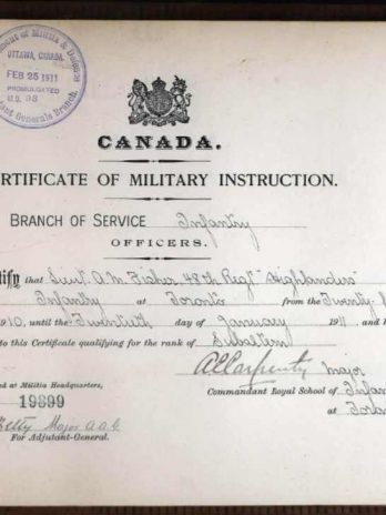 Lieutenant Alistair m fisher took an examination on 21st November 1910 qualified as rank of subaltern with 48th regiment of Highlanders.