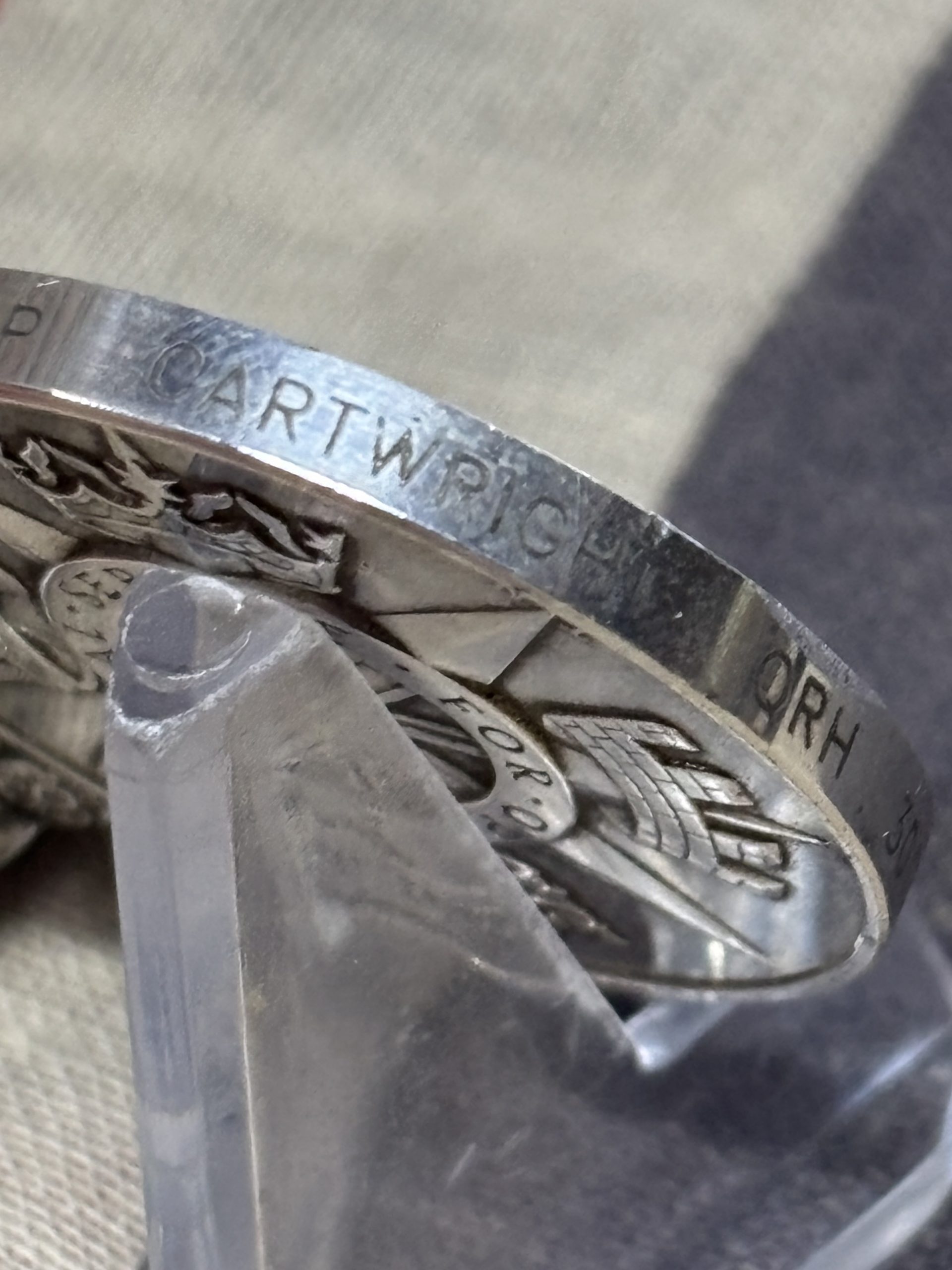 The medal has its original silk (dirty) silk ribbon and retains its clasp for wear