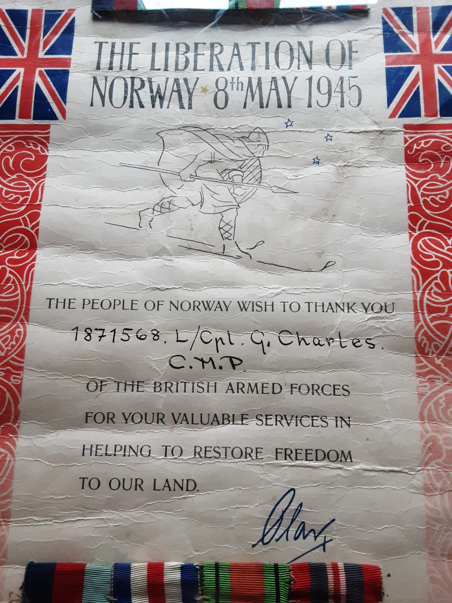 Corps of Military Police. Liberation of Norway. WWII. L/Cpl Charles. CMP.Availability: 1 in stock