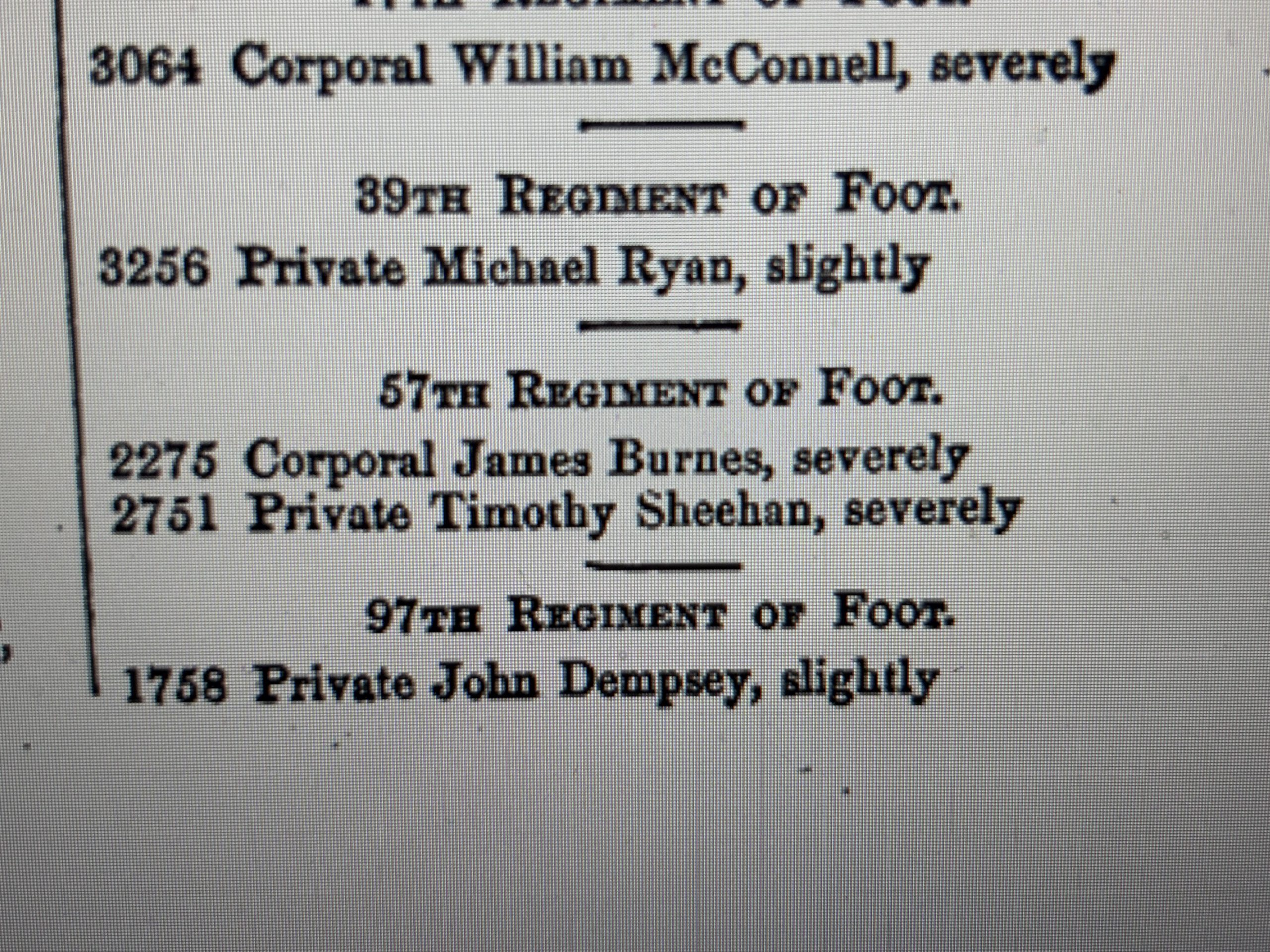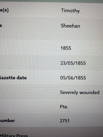 His wounding is noted in the London Gazette dated 6/6/1855.