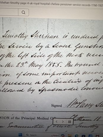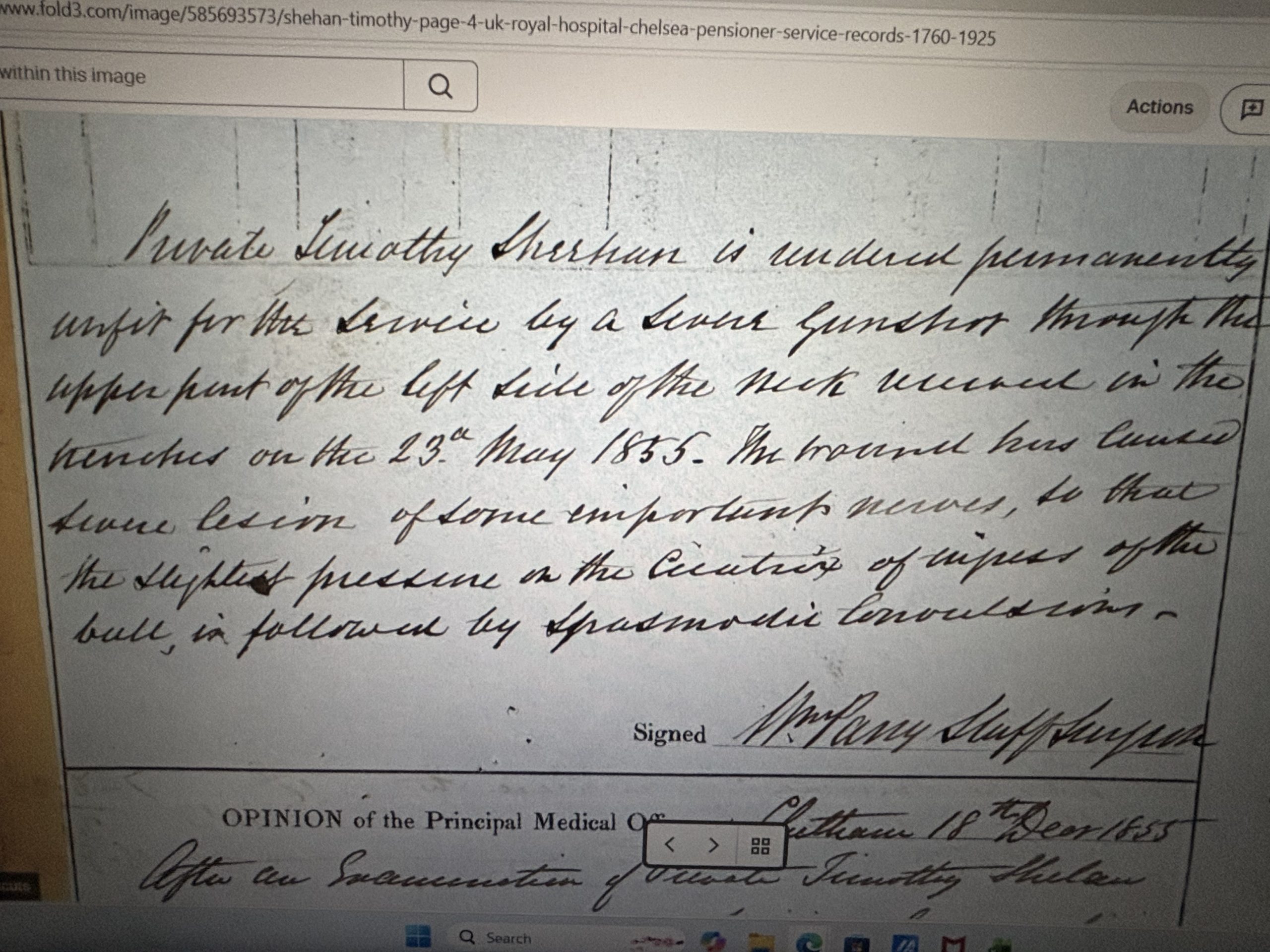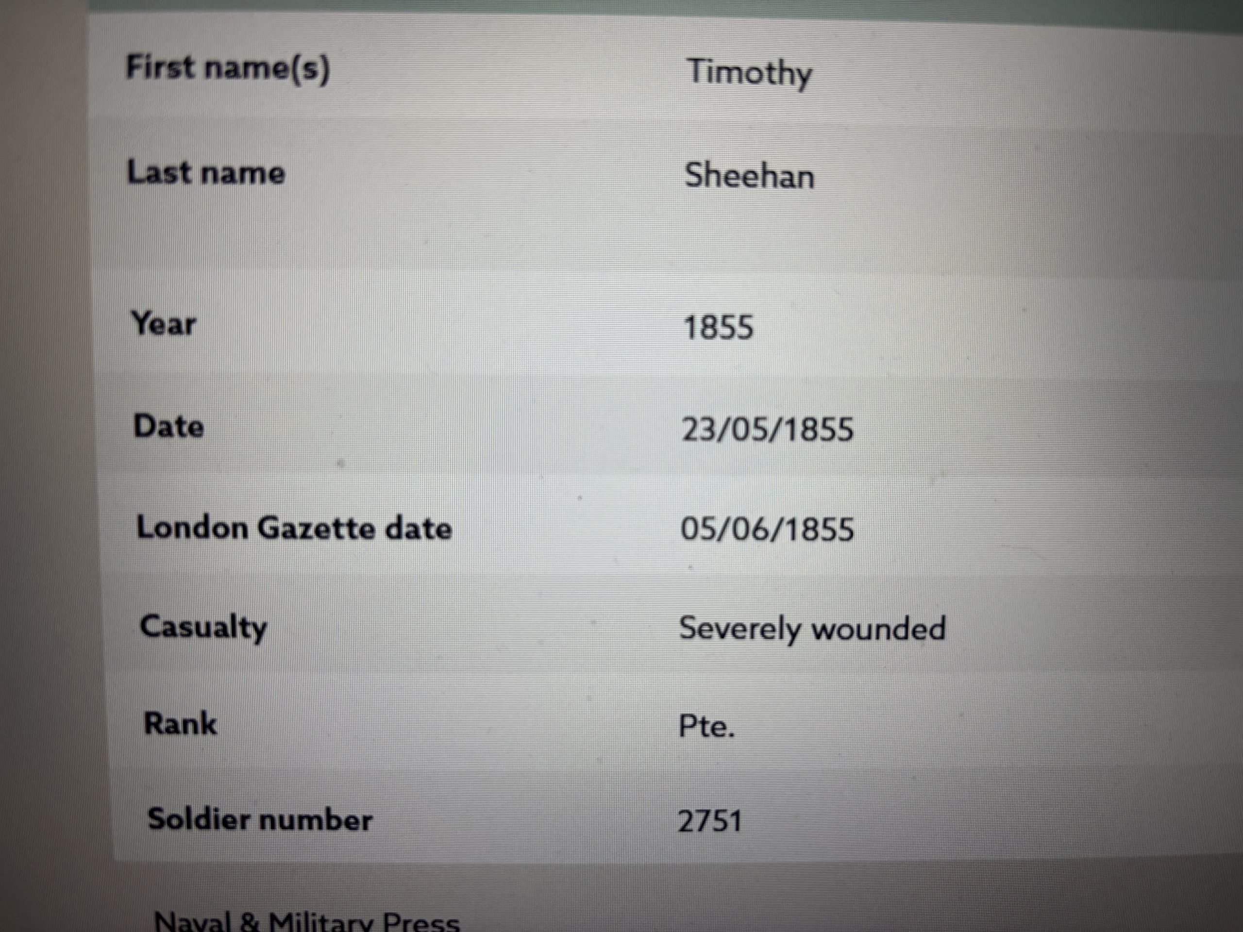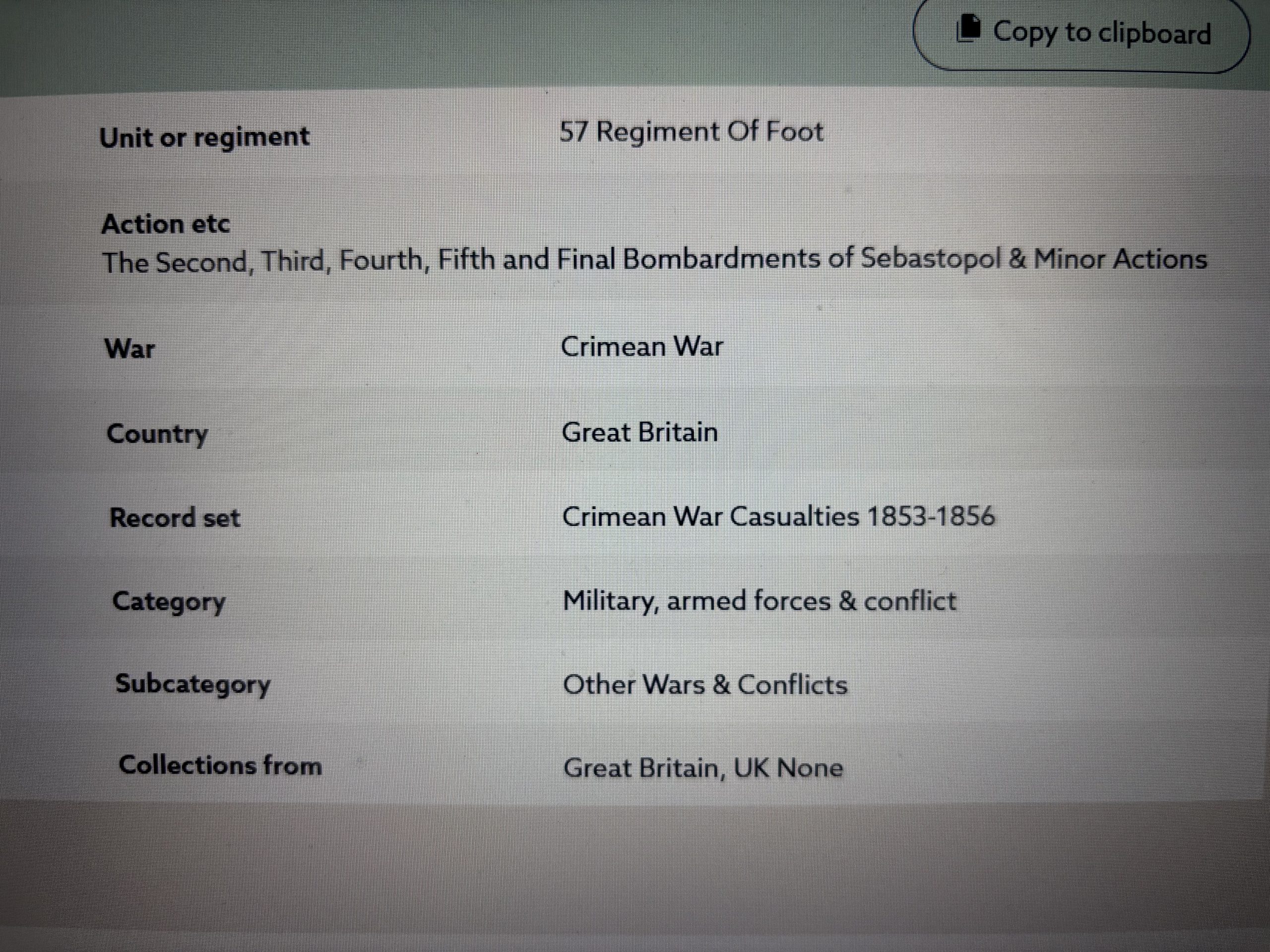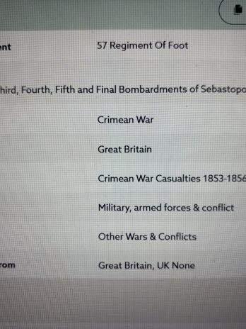 His records tell us he was in the trenches during the Seige of Sebastopol when on the 23rd of May 1855 when he was victim to a gunshot wounding.