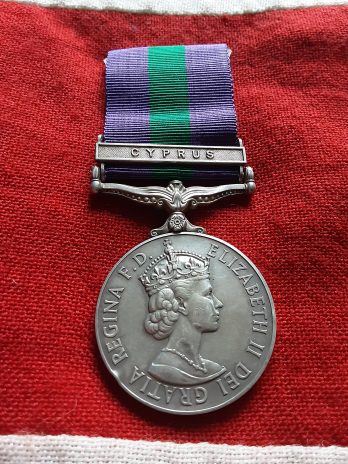 A general service medal with Cyprus clasp named to 23453633 gdsm h b Wright gren gds .