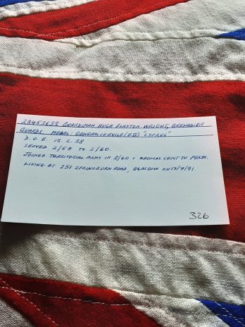 He was living at 251 Springfield Road, Glasgow he was still living there in 2007 and was noted as a member of the Northumbrian branch of the Grenadier guards association.