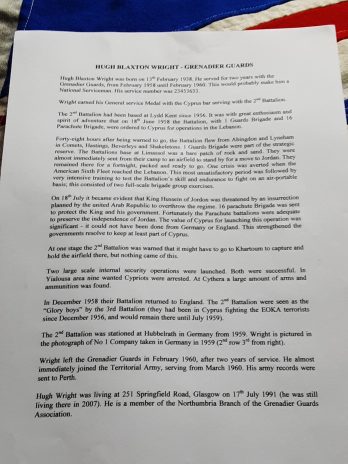Comes with copies of his gsm medal award roll , copy group photo in 2hich he is identified along with all the others in the picture as no 1 Company 2nd bn Grenadier Guards Germany 1959.