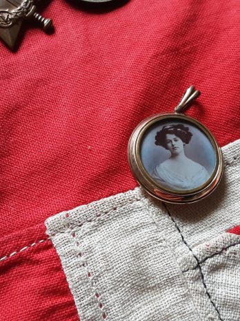 Gold plated locket wirh photo of Francis and on other side his wife .