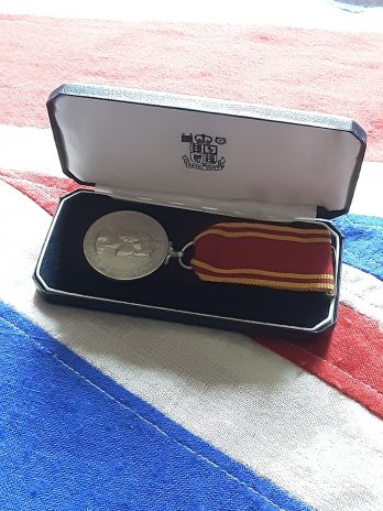 A boxed Fire brigade long service good conduct medal and to sub offr Robert Hyde.