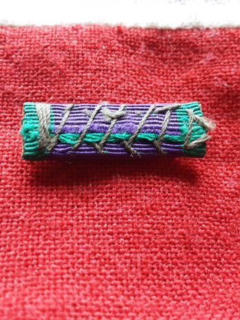 A sew on piece of general service medal ribbon with mid emblem .