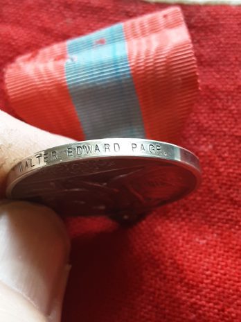 A original cased imperial service medal brooch mounted for wear named Walter Edward page.