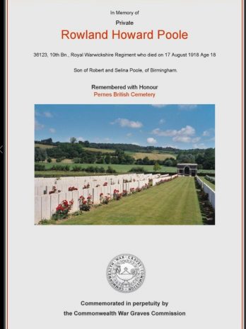 Rowland Howard Poole was born October 1899 at King’s Norton in Worcestershire.