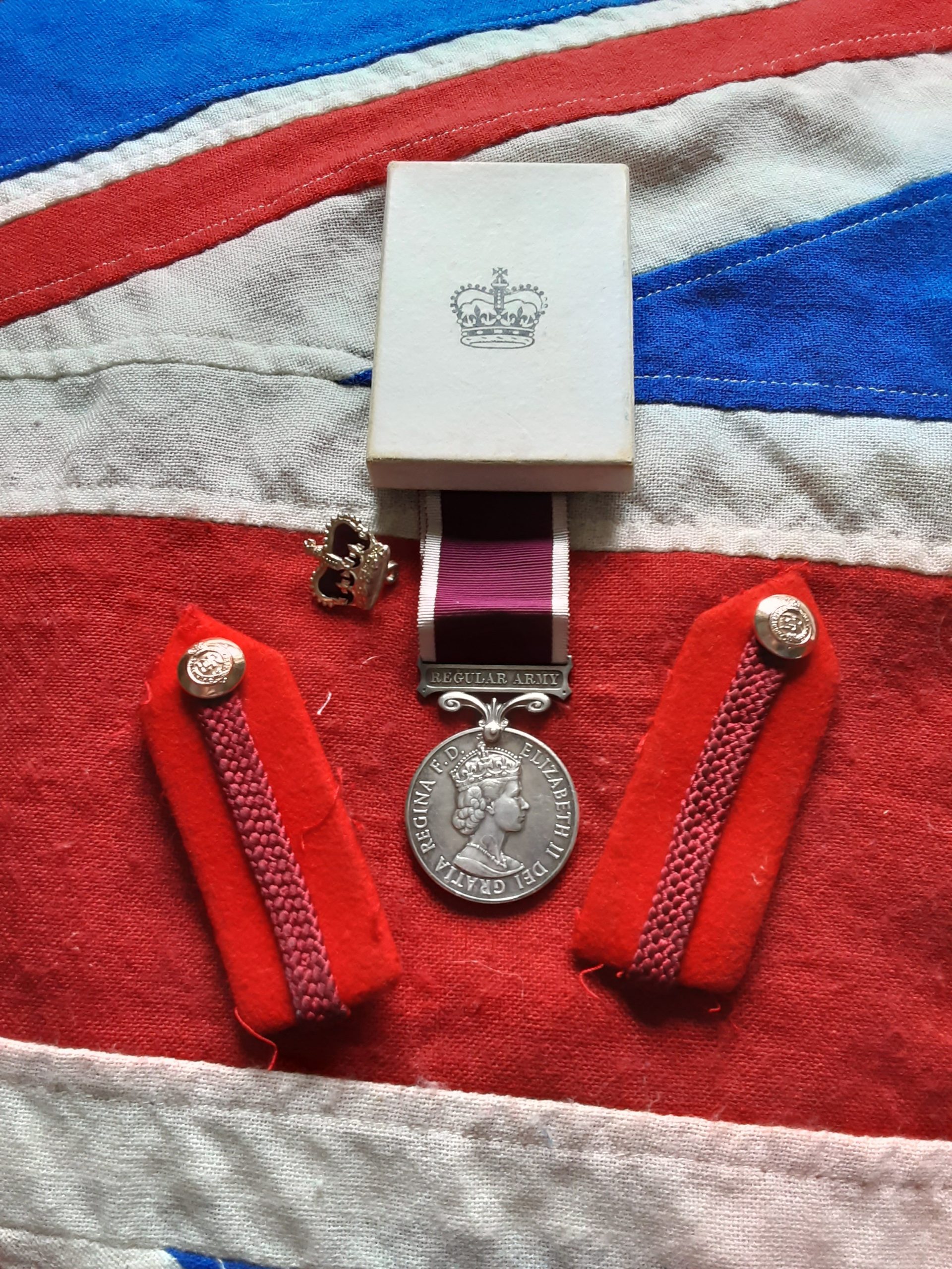 A Queen Elizabeth 2nd regular army long service good conduct medal named capt h a mc kenna ra .