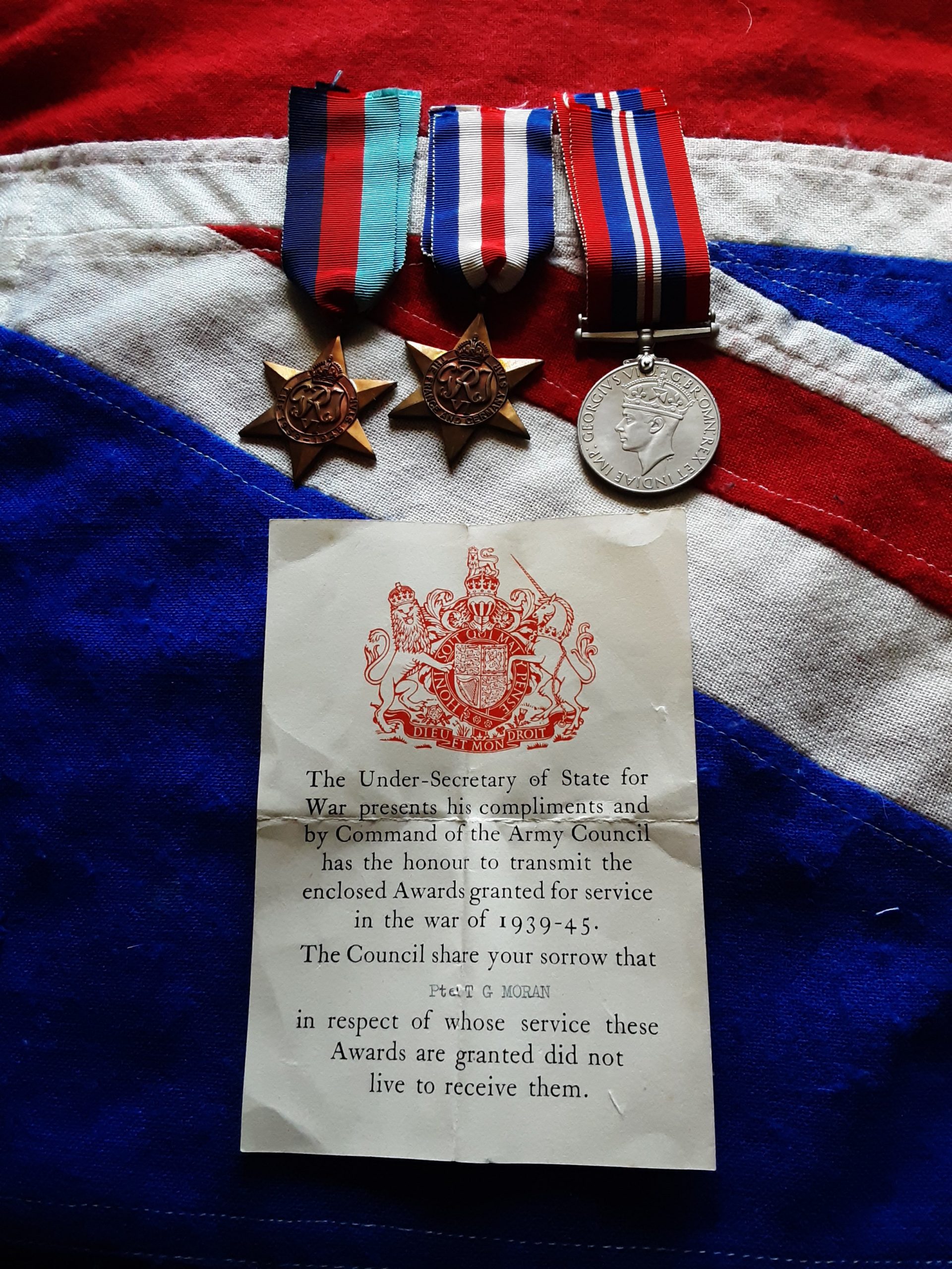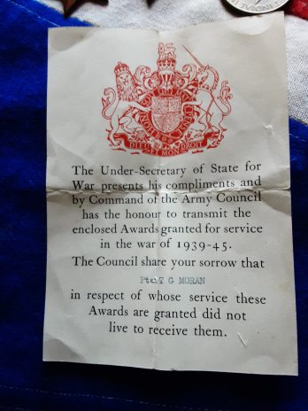 Ww2 army Council casualty slip named to pte t g moran .