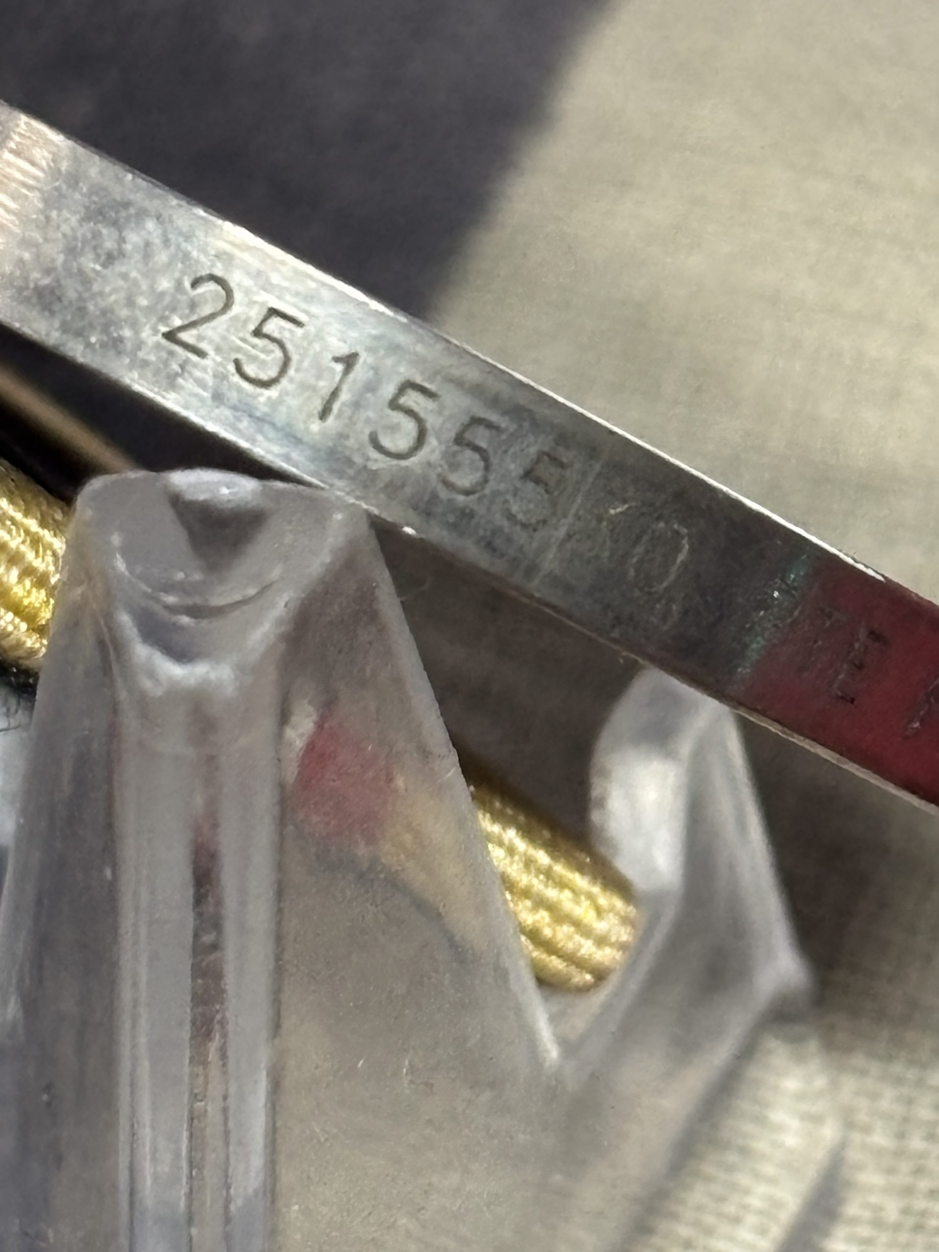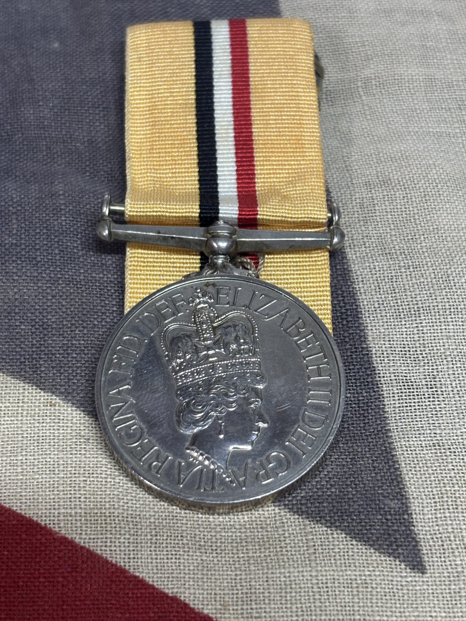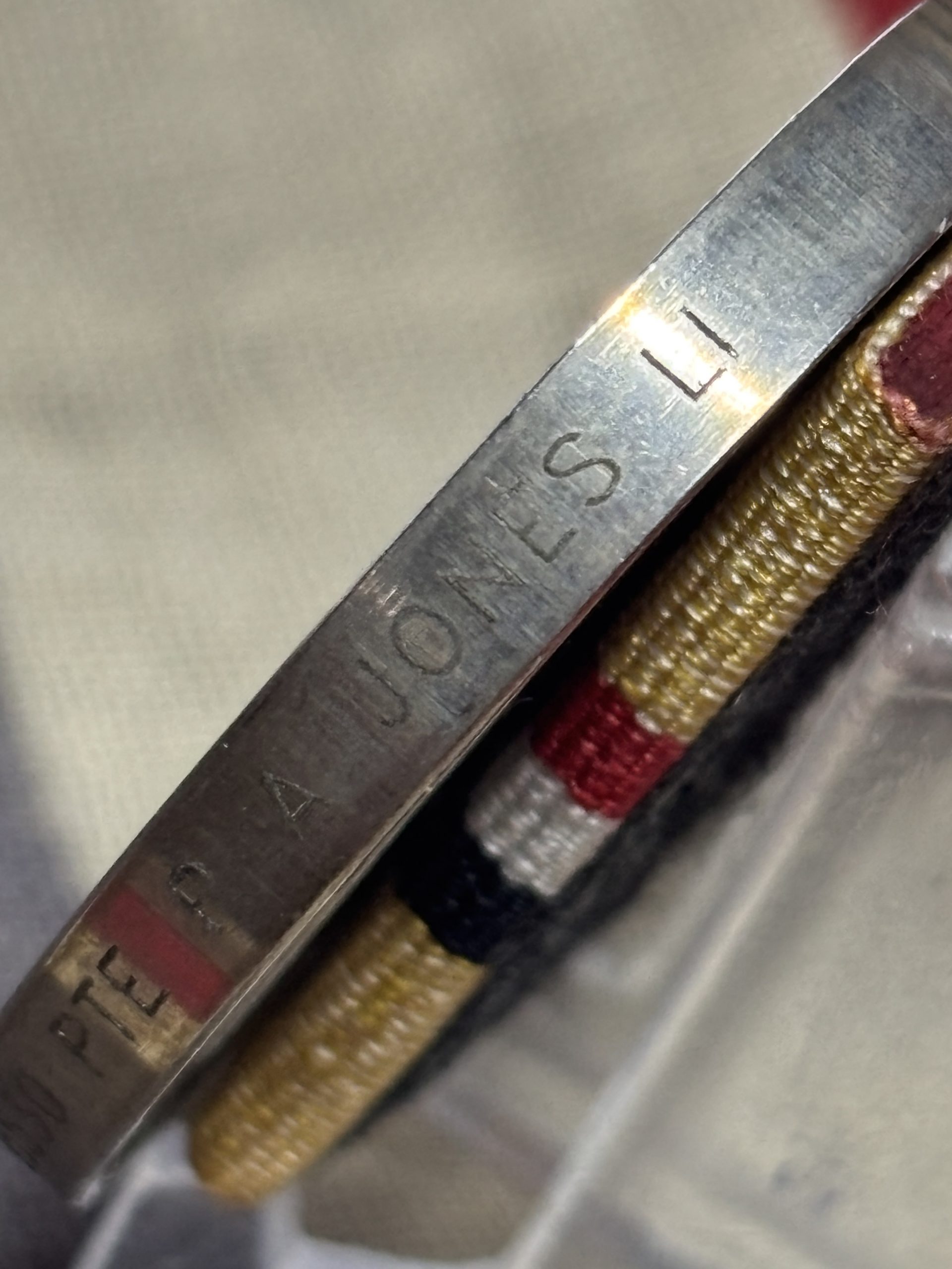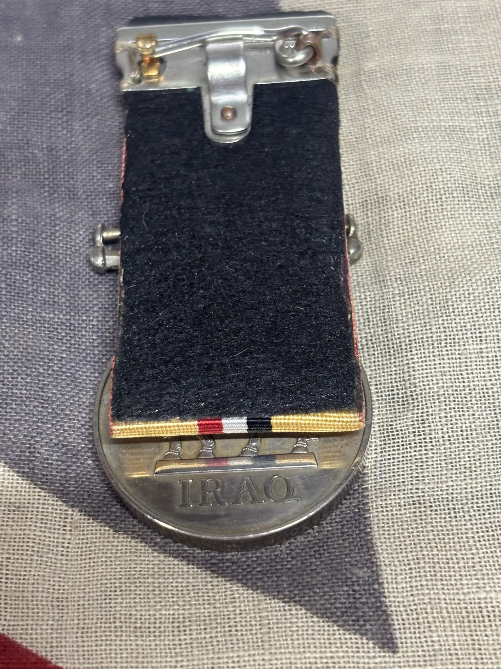 Mounted on original silk ribbon with clasp for wear