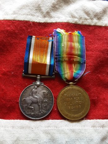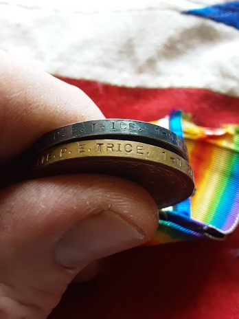 Ww1 pair on short original ribbons named to gs-20561 pte p e trice 1 d gds .