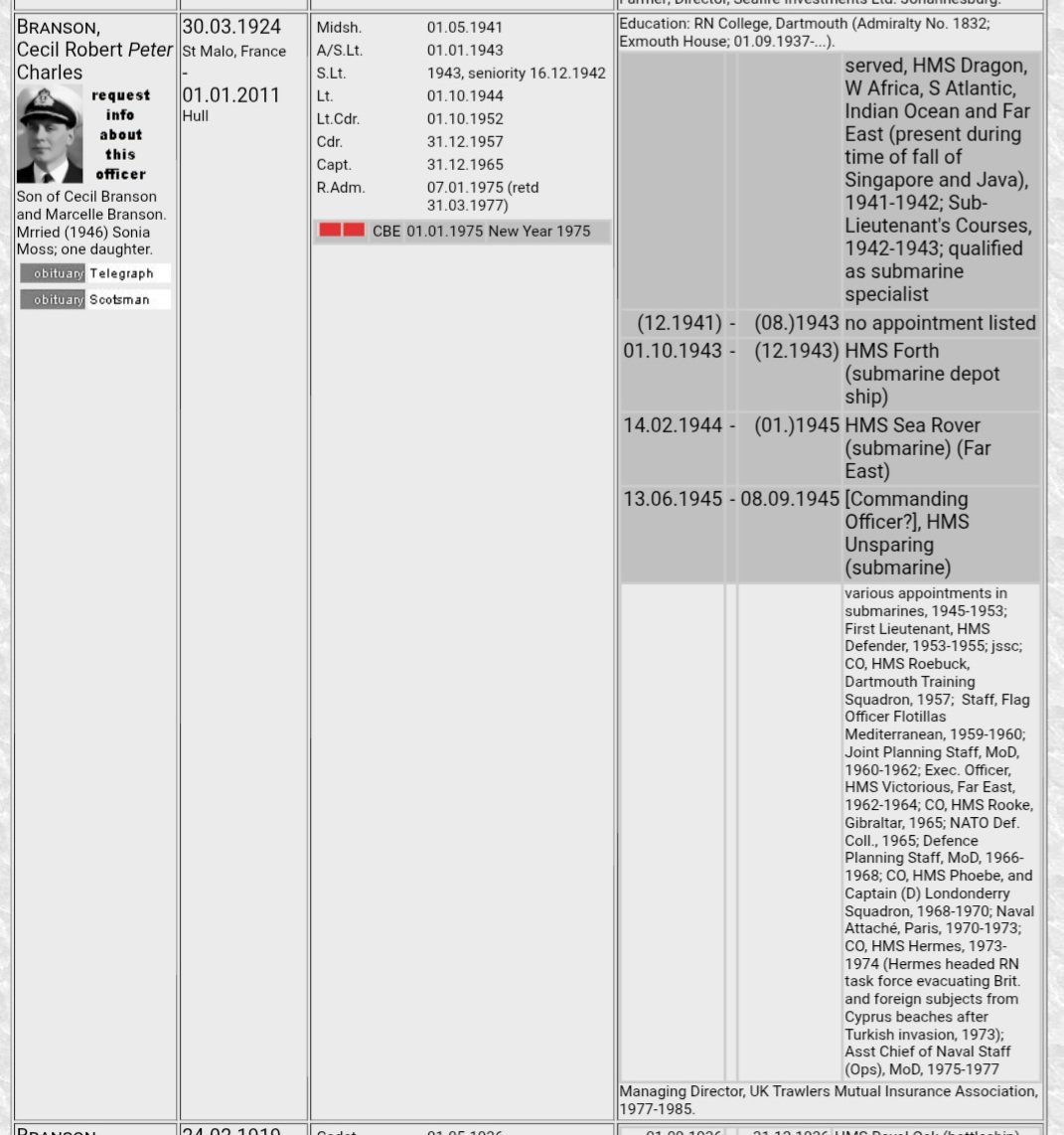 A very nice attributed ww2 & cbe Group to rear admiral Cecil robert Peter Charles Branson rn .