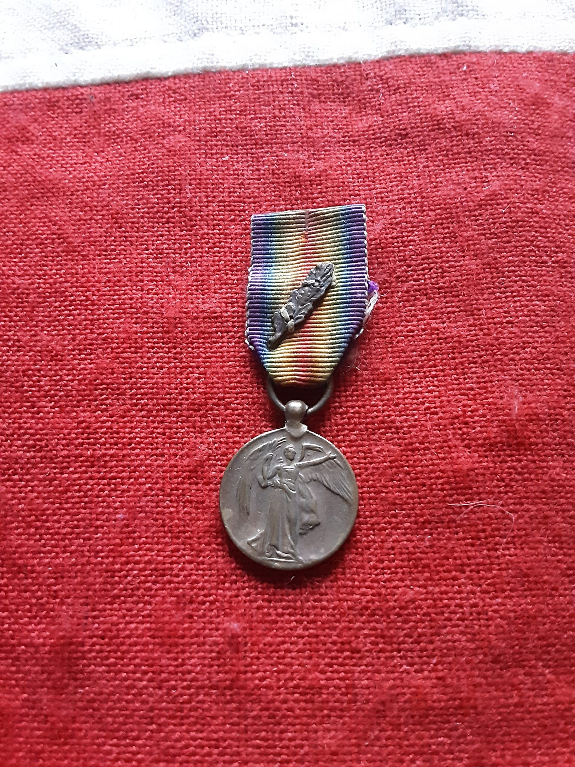 Period miniature WWI Victory Medal MID. Mentioned in Dispatches oakleaf.