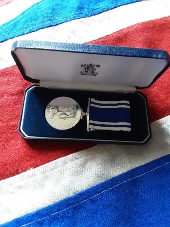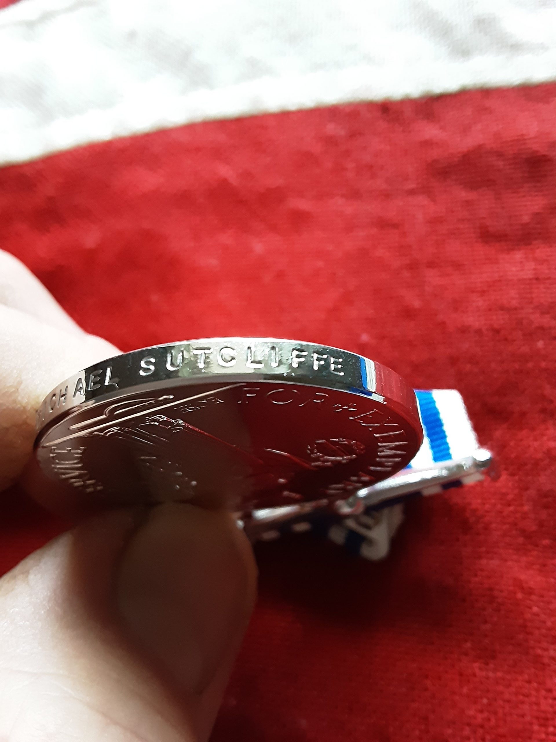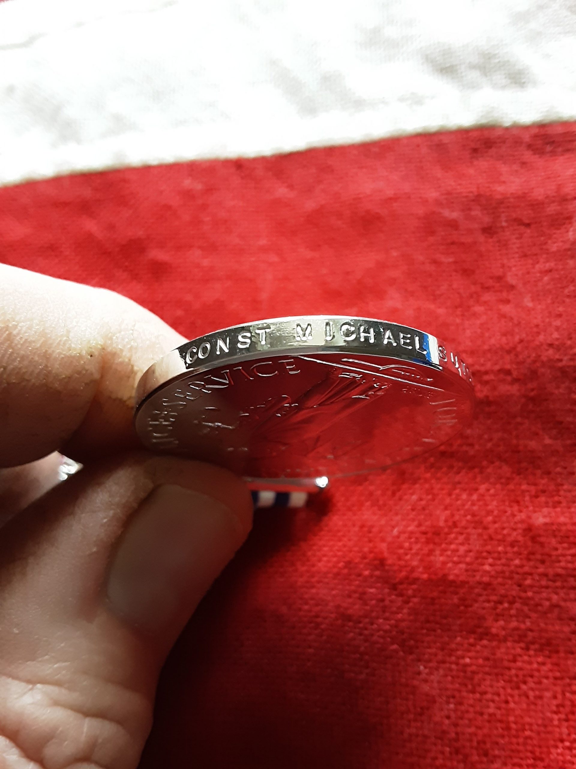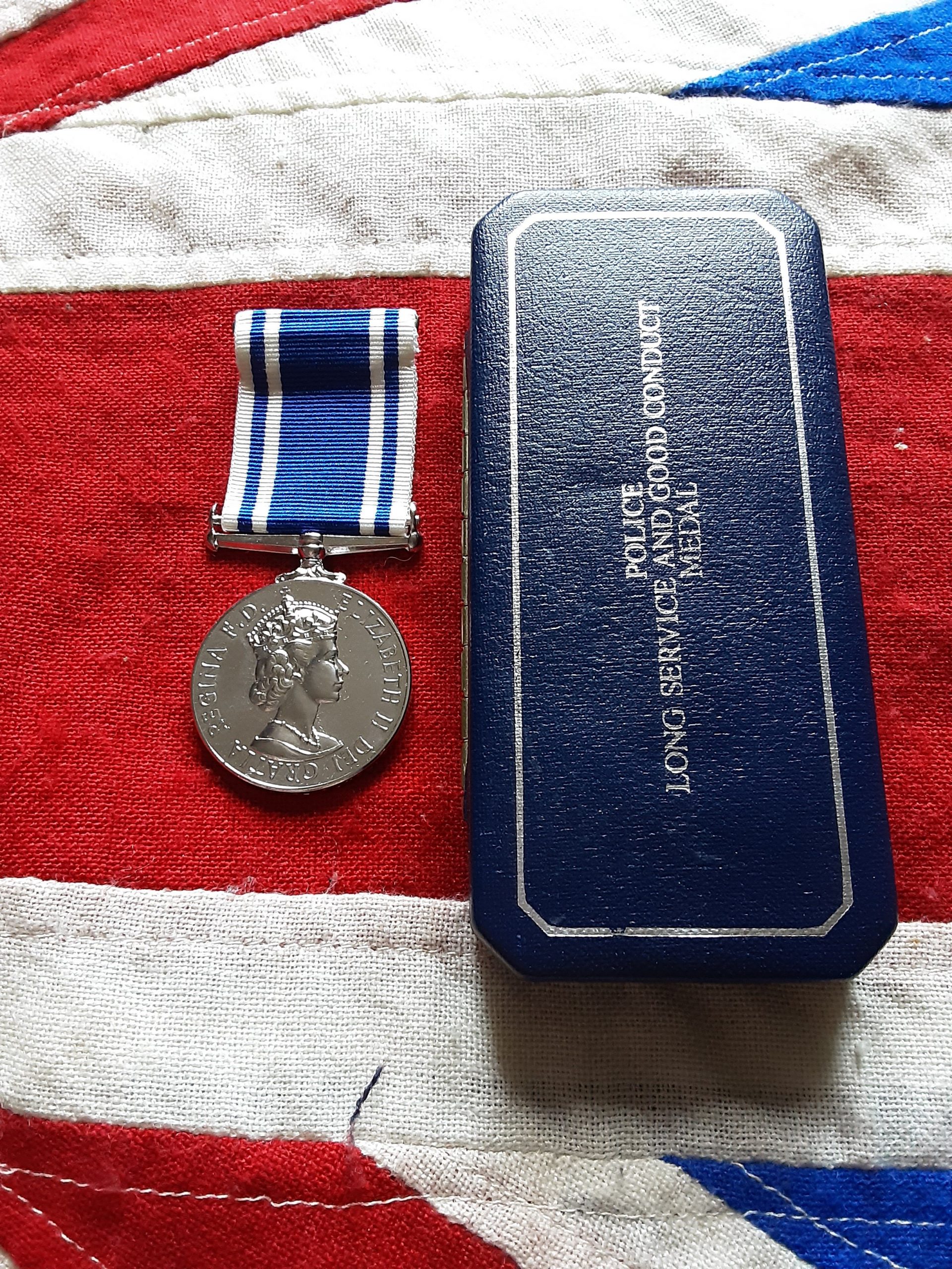 In its fitted Royal mint case brooch mounted for wear police Long Service Good Conduct Medal named const Michael Sutcliffe.