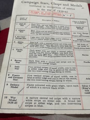 The medal slip indicates 5:1 medals which would mean that there is a medal missing (maybe Italy Star) and a clasp for the Africa Star.