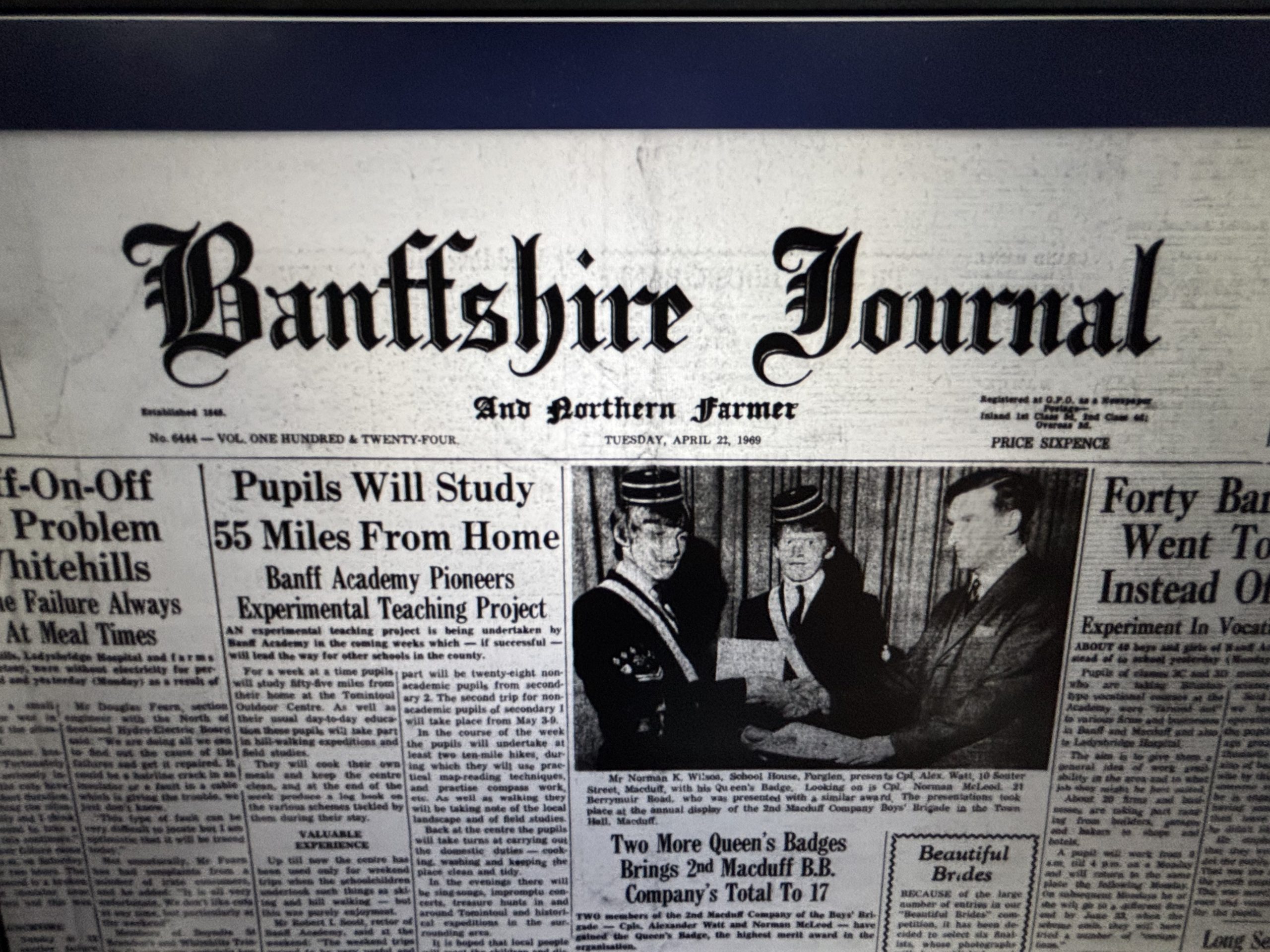 Reported in the Banffshire on Tuesday April the 22nd 1969.
