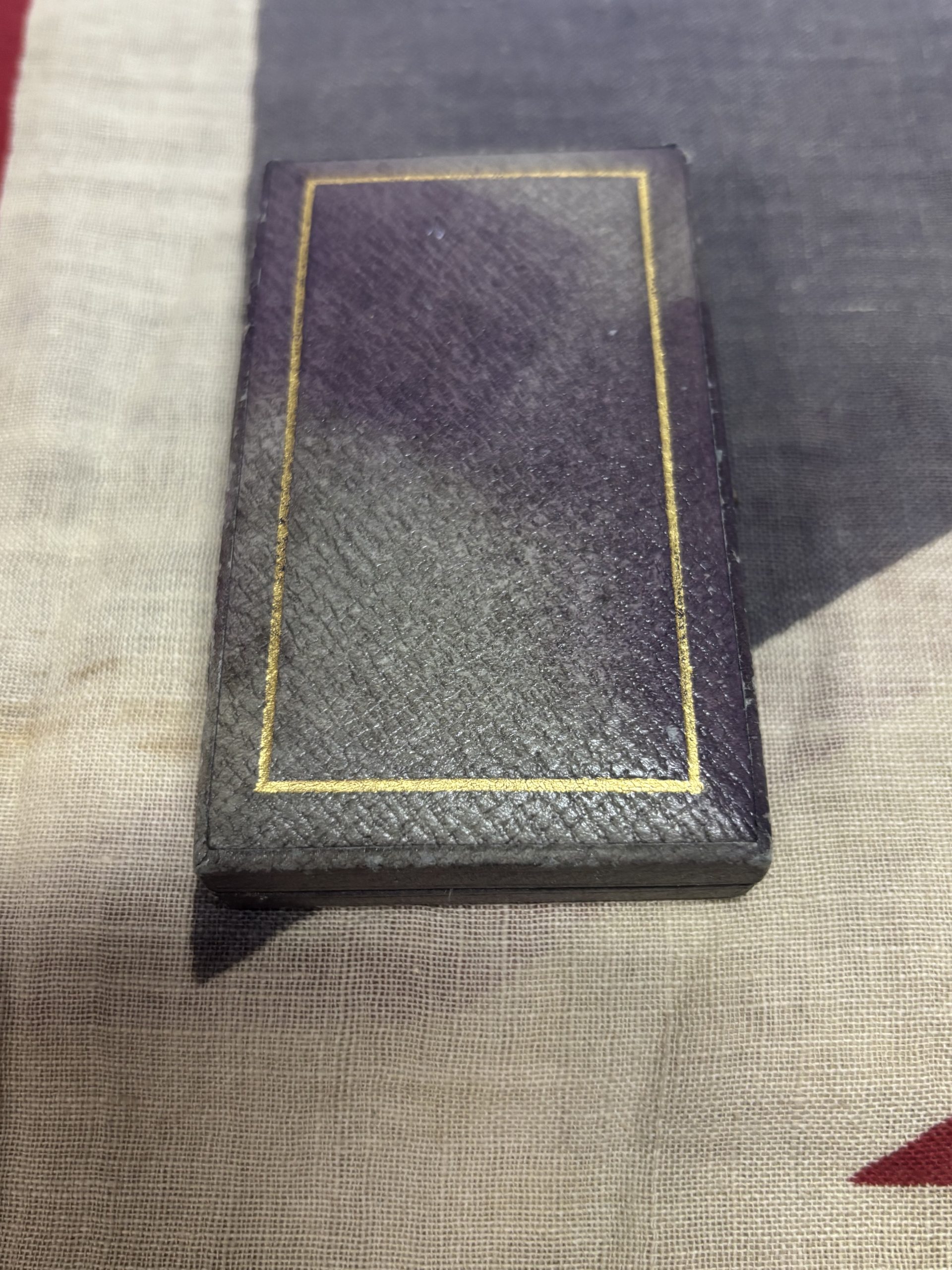 The medal comes in its original case. The case does have some fading on the outside.