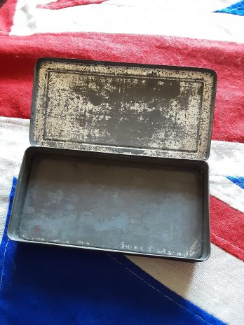 A more unusual and rarer example than the 1914 princess Mary tin this is the clever 1915 combined chocolate and tobacco tin as pictured.