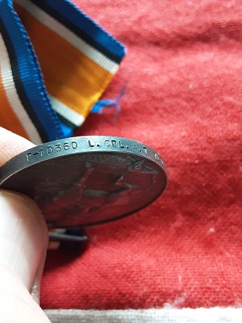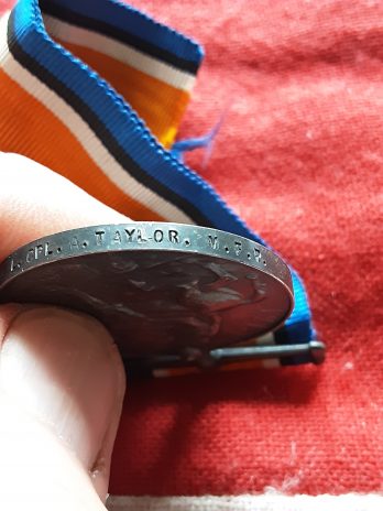 Ww1 British War Medal on long original ribbon named to p-10360 l cpl a Taylor m f p .
