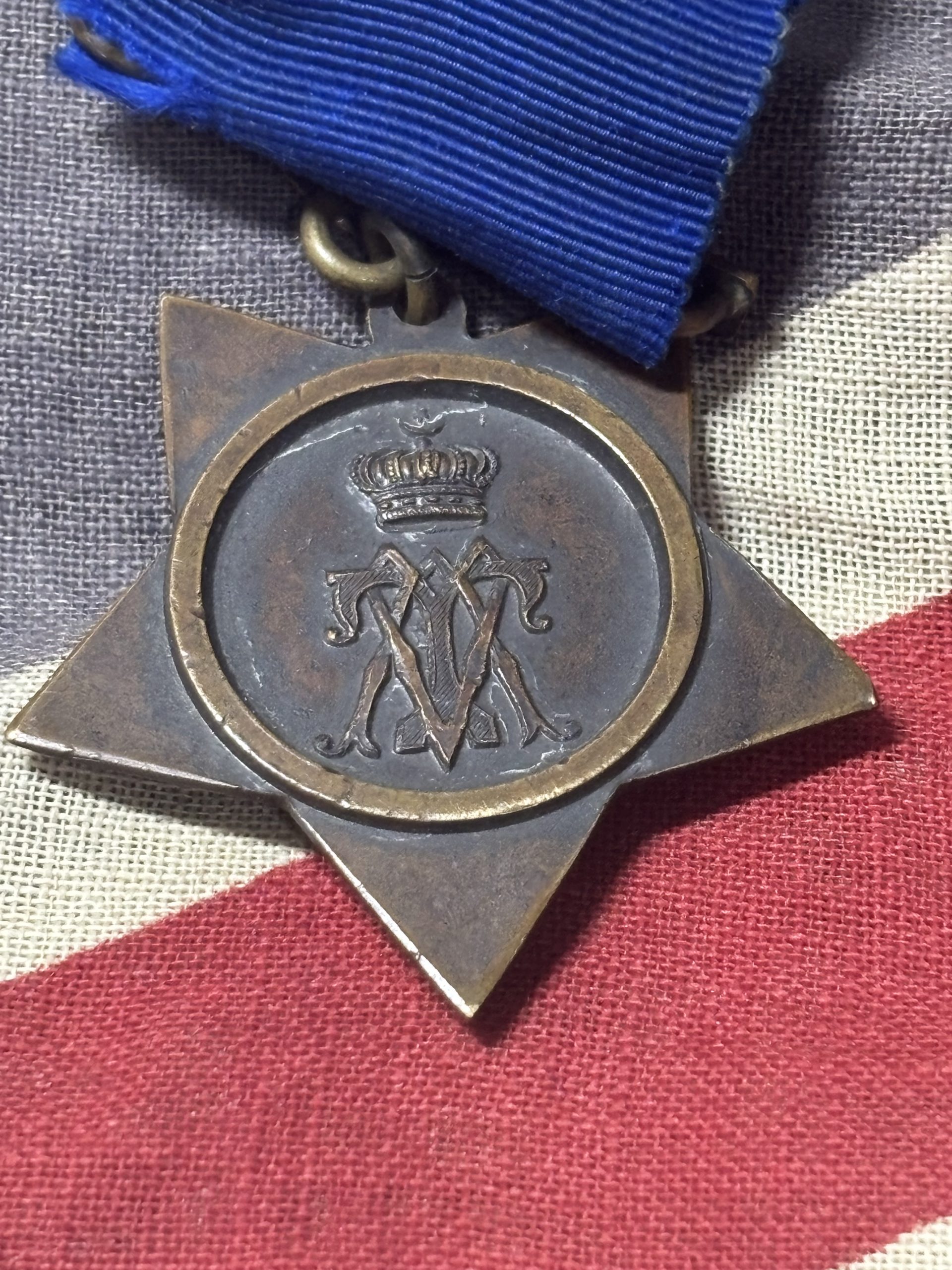 Unnamed Khedives Star, unnamed as issued with a short piece of original ribbon.