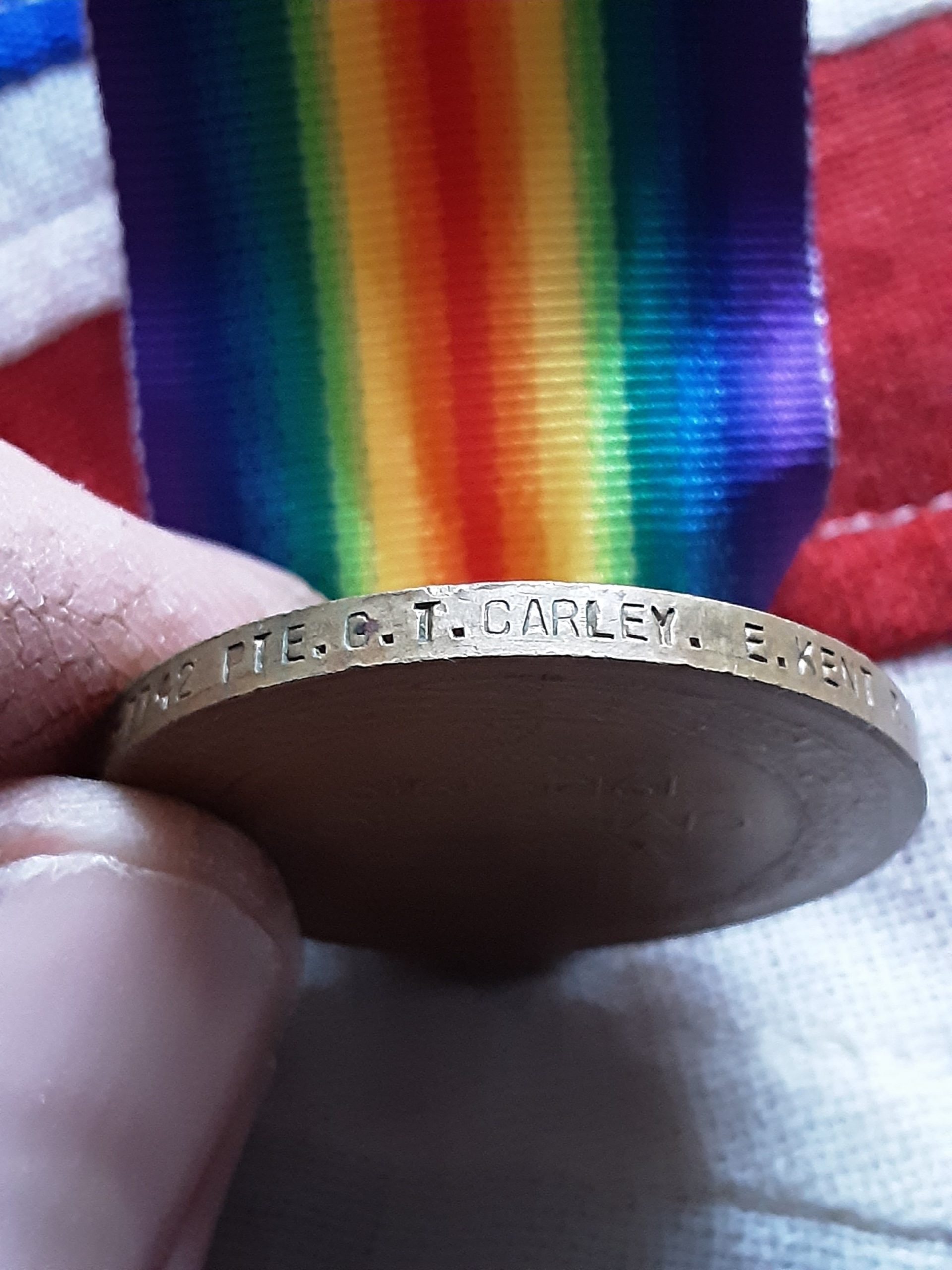 ww1 victory on replacement ribbon named to L 7742 pte g t carley e kent r .