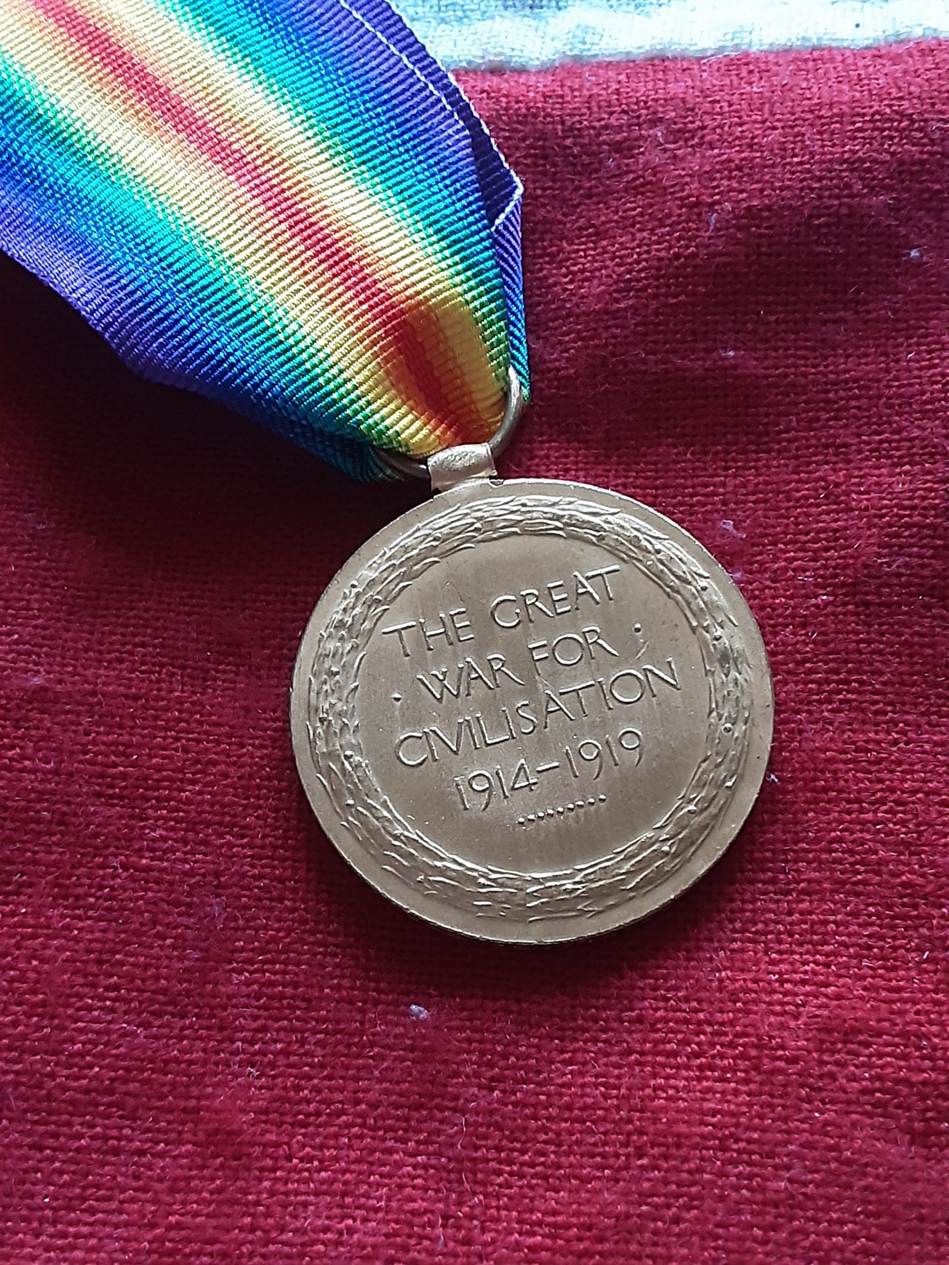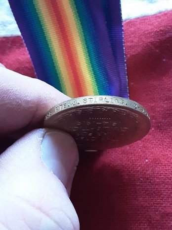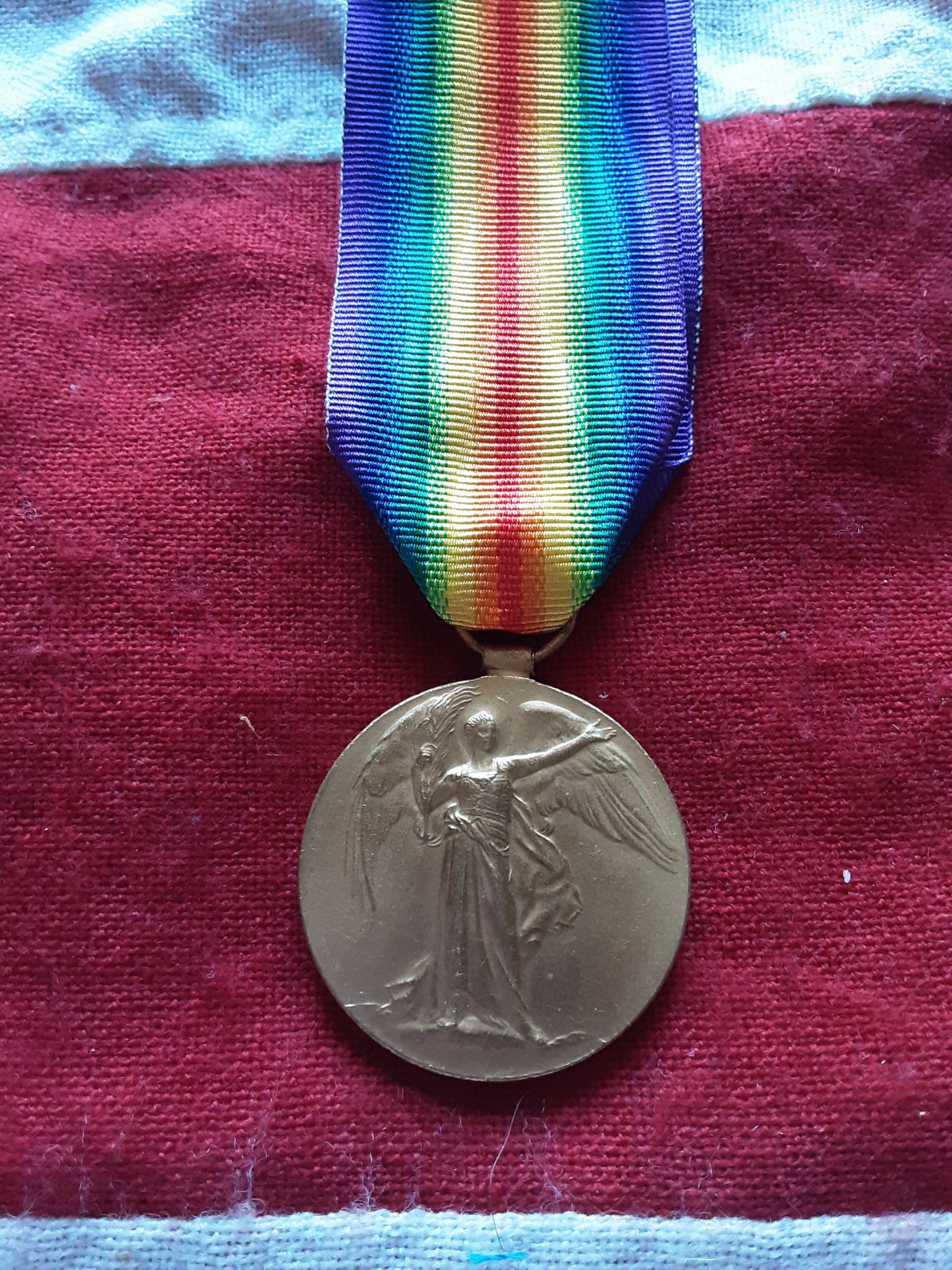 A victory medal looks unworn on replacement ribbon named 5158 pte j Stirling 2 sco h .