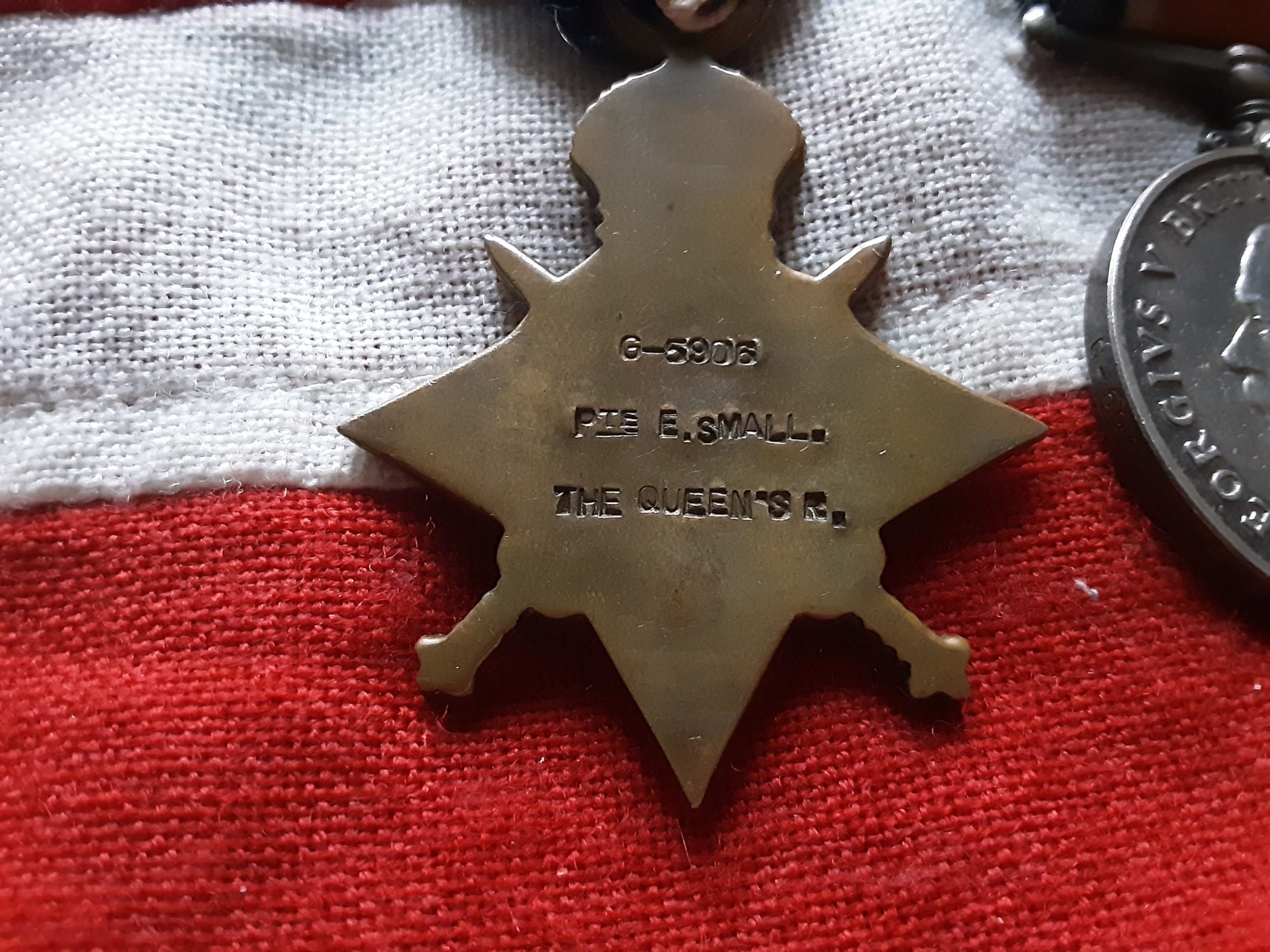 1915 star ,bwm and victory g5906 pte e small the queen’s r.