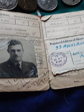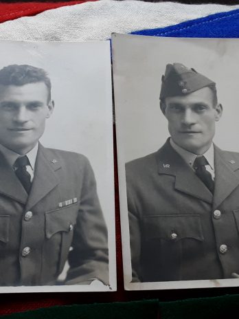 2 pictures of George in raf uniform with his ww1 ribbons on display.