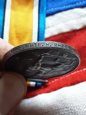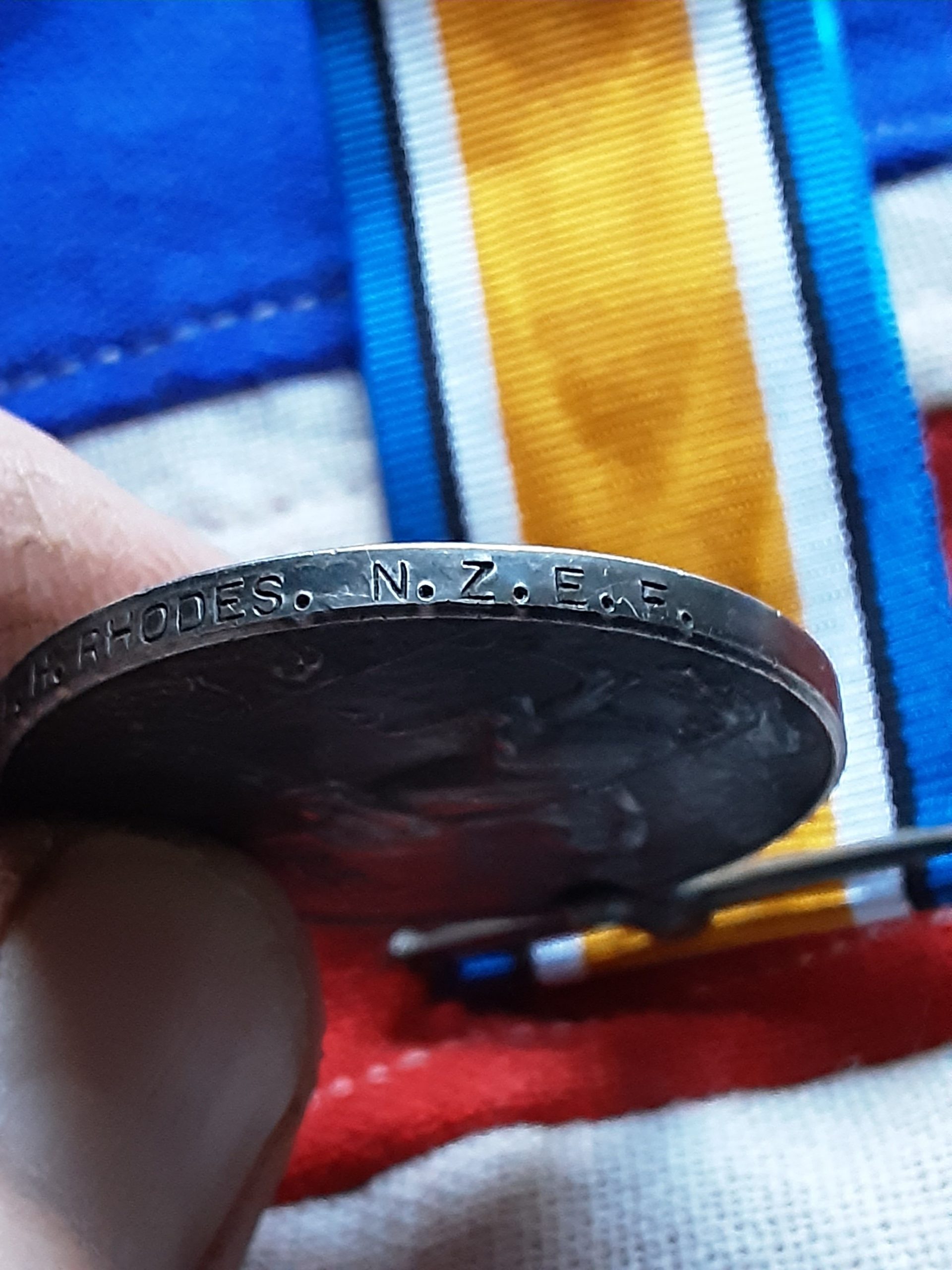 Ww1 British War Medal on replacement ribbon named 13659 pte h Rhodes nzef.