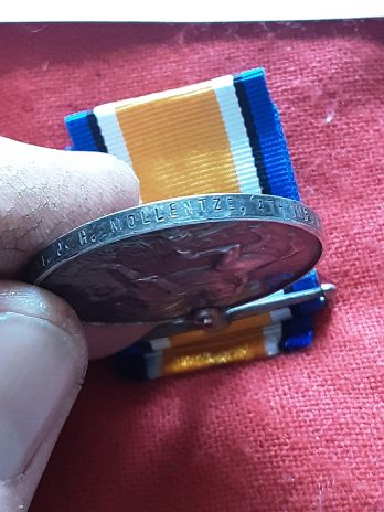 A south African issued bwm on replacement ribbon named to pte j h mollentze 4th infantry.