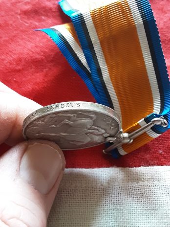 A ww1 British War Medal on long original ribbon named s 22118 pte j w mc kay gordons.