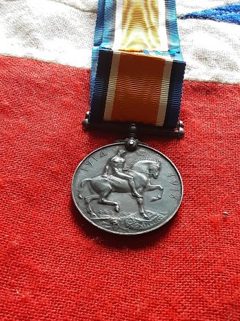 An interesting sole entitlement British War Medal on long original ribbon named to.