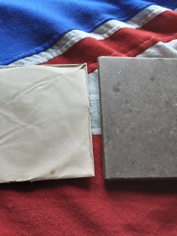 A cardboard memorialnplque case with rarer to find embossed inner paper envelope.