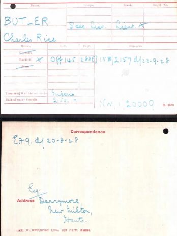 Charles rice butler was born 17th January 1885 at Shardlow In Derbyshire.