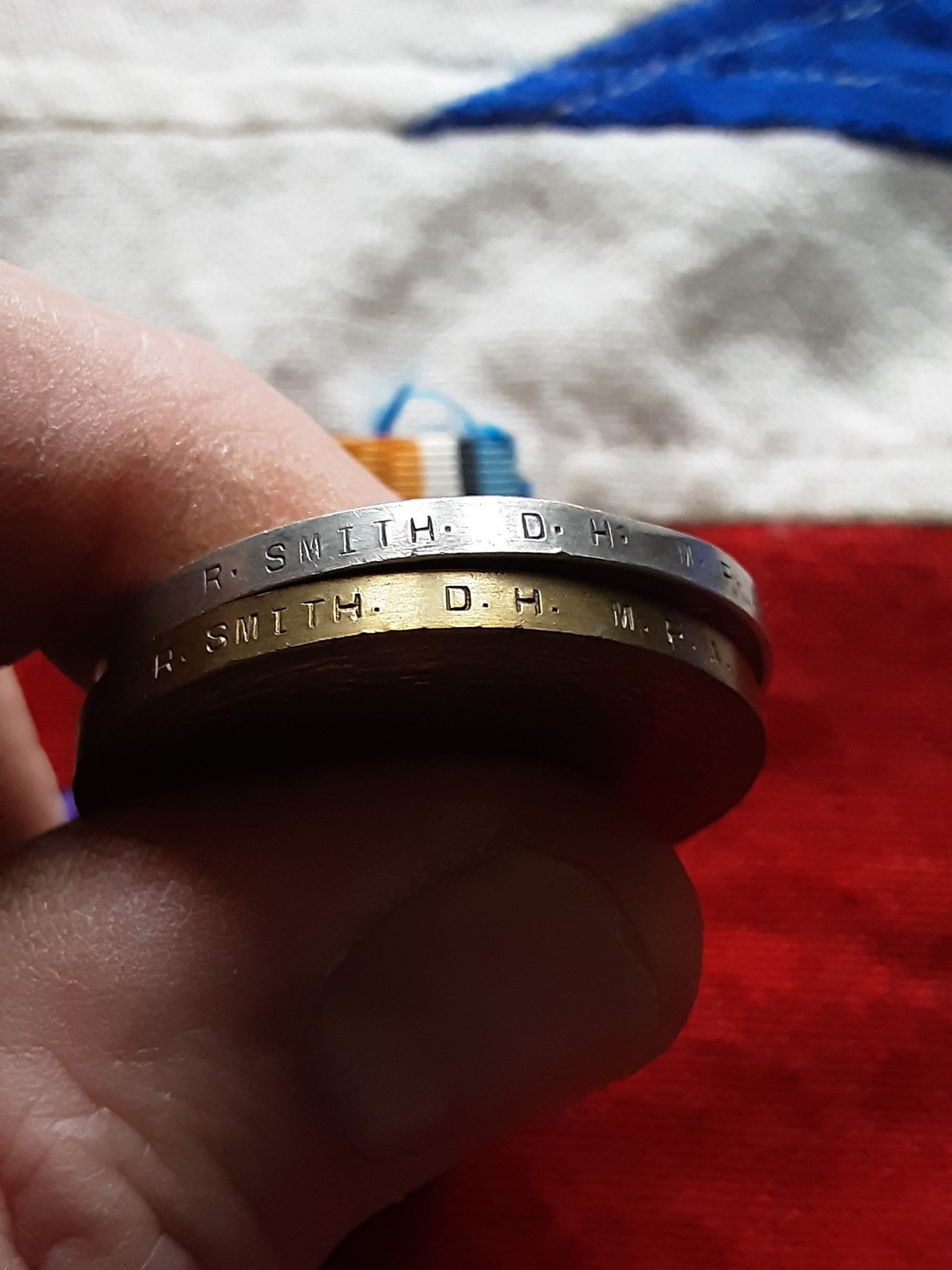 Ww1 pair on short original ribbon named to r Smith d h m.f.a