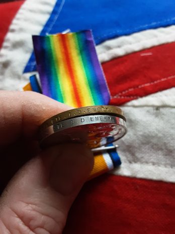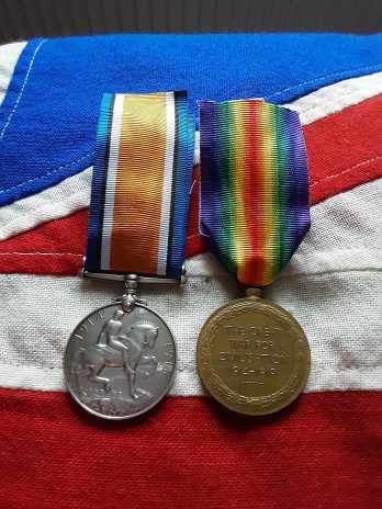 Ww1 pair on replacement ribbons named to se25974 pte I d Emery avc.